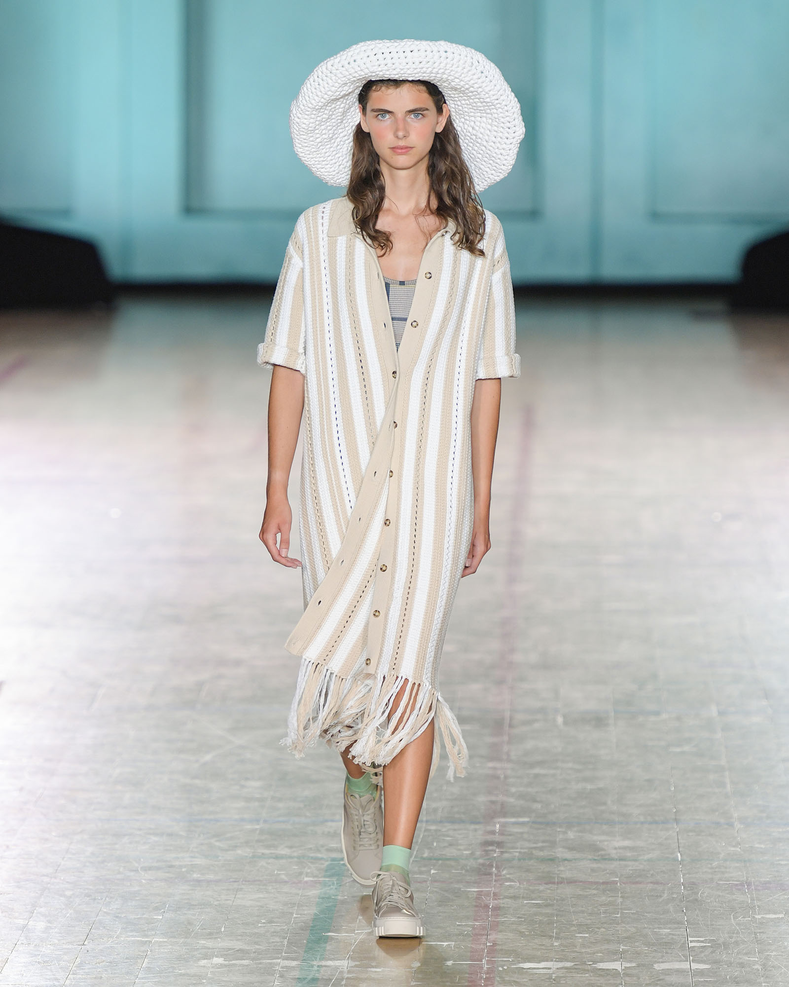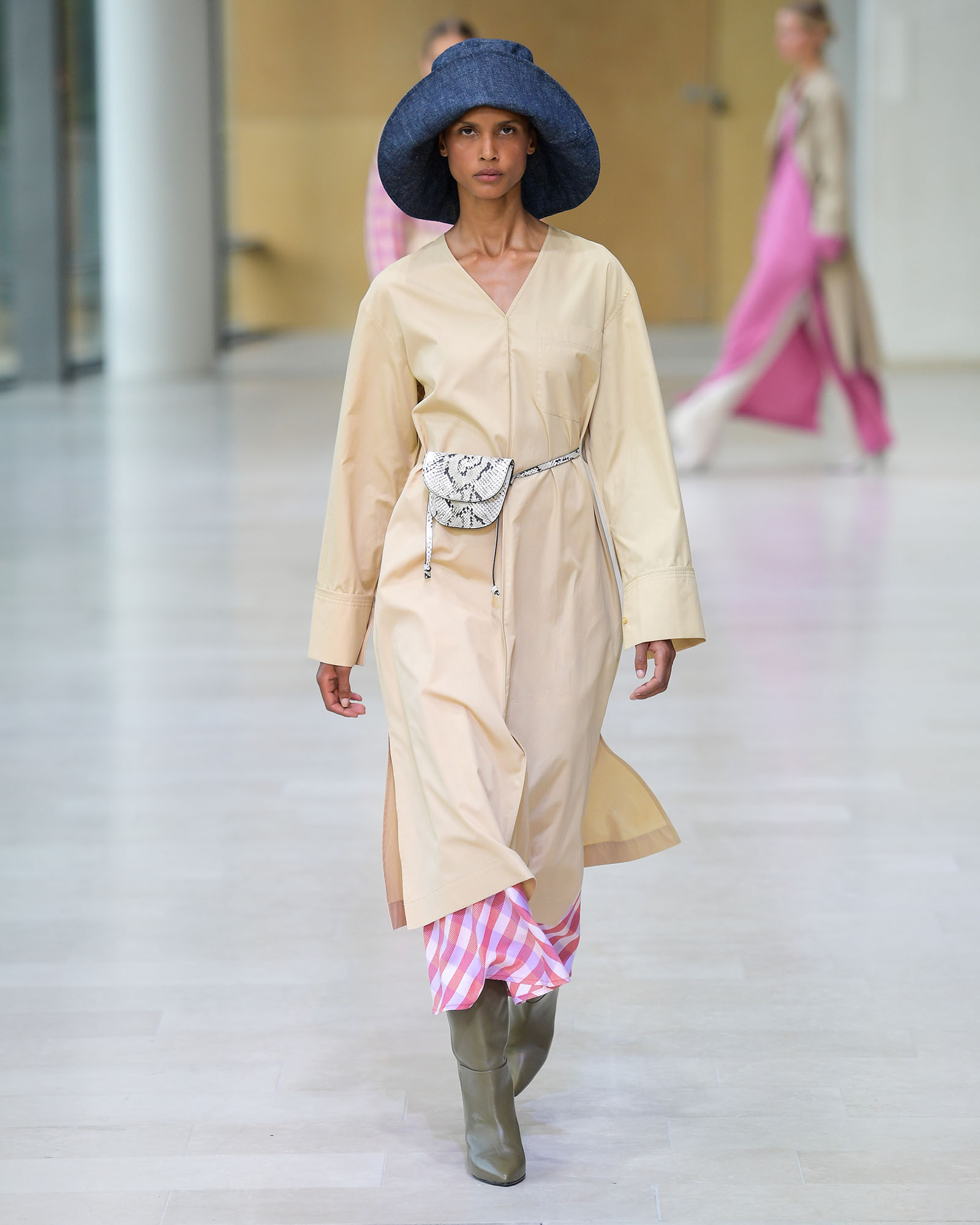 Die wenigsten Designer*Innen schickten ihre Models ohne Kopfbedeckung über den Laufsteg. Ab und zu wickelte man ein Tuch um den Kopf (Lala Berlin) oder setzte eine Cap auf (by Malene Birger), meist aber war es der Fischerhut, der sich klassisch oder mit breiter Krempe zeigte und die Outfits ganz ohne Aufwand komplettierte, ja ihnen gar den letzten Schliff verpassten. Bereits jetzt gilt also: Wer vor dem Kleiderschrank nicht weiter weiß, kann sich häufiger an Hüten bedienen, im nächsten Vintage Shop des Vertrauens gibt es (sofern noch kein eigenes Exemplar vorhanden ist) ganz sicher auch einige wunderbare Exemplare.