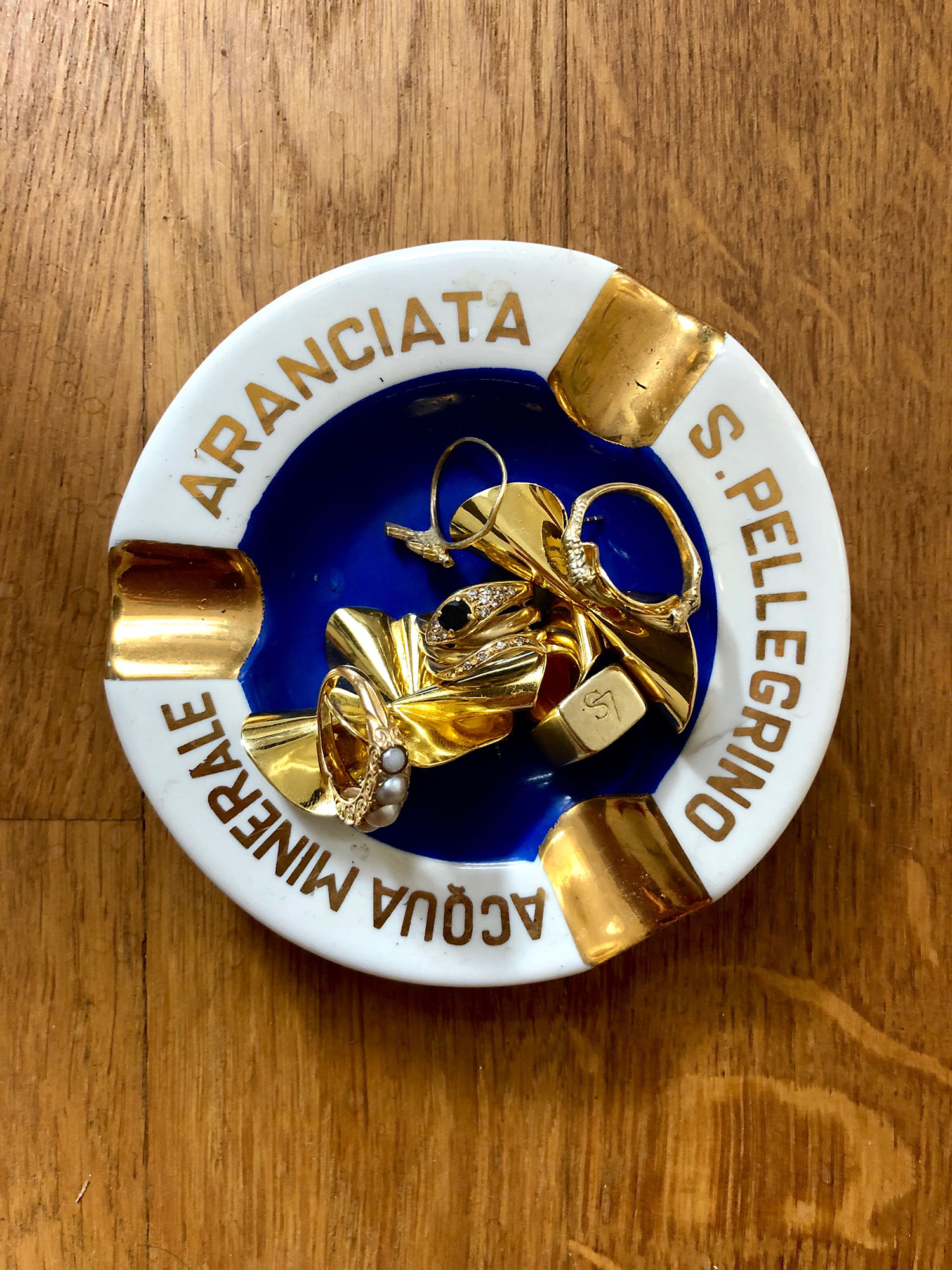 Ich trage fast jeden Tag diese gold-glänzenden Ohrringe, die ich sehr gern habe. Wenn ich sie nicht trage, dann greife ich zu meinen Laura Lombardi Ohrringen. Meine Ringe trage ich jeden Tag. Die Zusammenstellung ist eine Mischung aus Erbstücken und Ringen, die ich auf Bali, in Paris oder Berlin gekauft habe. Dann habe ich einen sehr schönen Siegelring, den ich von der Marke Love Stories geschenkt bekommen habe, den ich liebe.
