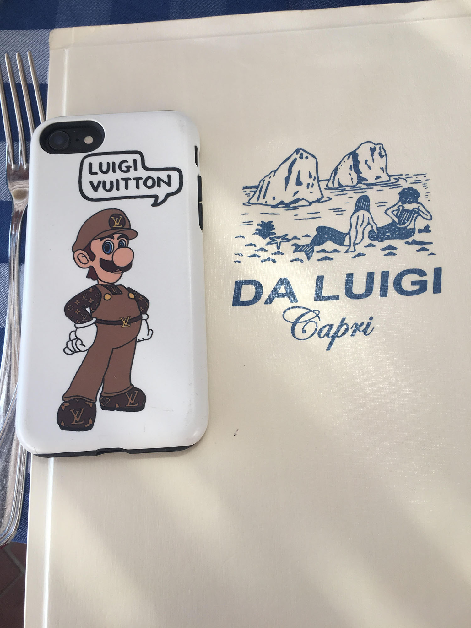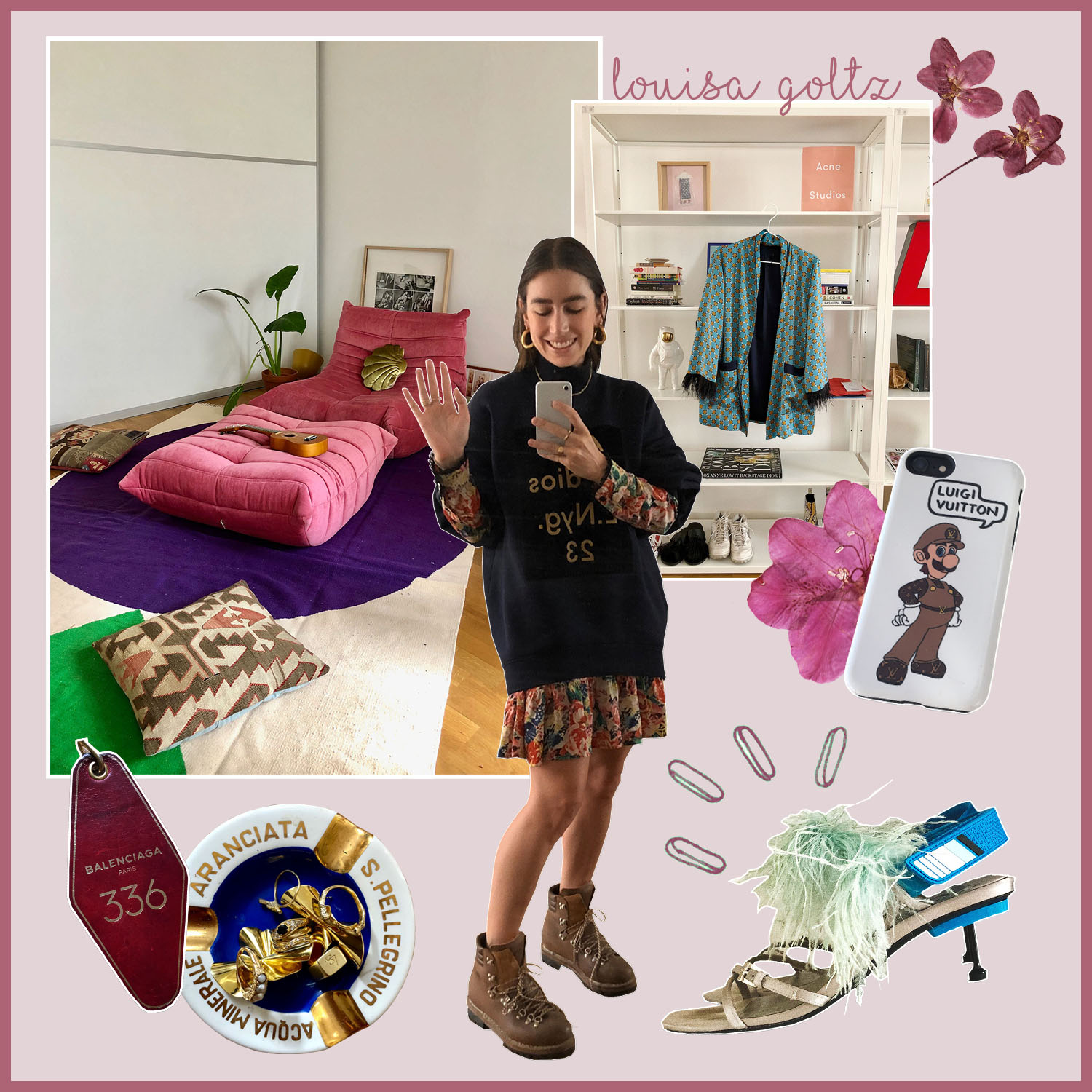 Ich liebe die Handyhüllen der englischen Künstlerin Angelica Hicks. Alle sprechen mich auf diese Hüllen an, und wollen sie auch haben. Sie sind ein bisschen witzig, aber nicht zu witzig und auf jeden Fall ein Eyecatcher. Luigi Vuitton passt zu mir, da mich manche meiner Freunde Luigi nennen, weil ich Italien so liebe und immer sage, dass ich eigentlich eine verkappte Italienerin bin.