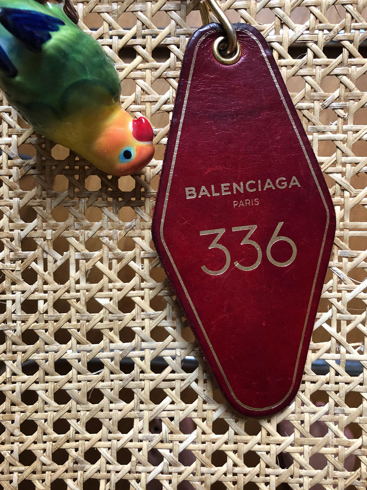 Ich habe mir diesen roten Balenciaga Anhänger vor zwei Jahren in Paris gekauft. Ich wollte unbedingt etwas bei Balenciaga kaufen und noch dazu einen großen Schlüsselanhänger haben, weil ich meinen Schlüssel früher des Öfteren versehentlich in meiner Vespa habe stecken lassen. Deswegen dachte ich, wenn ich einen großen Schlüsselanhänger habe, dann passiert mir das nicht mehr, weil ich ihn dann nicht mehr übersehen kann. Stimmt auch. Ich liebe die Patina, die der Schlüssel inzwischen hat. Irgendwie mag ich das Gefühl, dass er wie ein Hotelzimmerschlüssel aussieht, ich kann nicht recht sagen, warum.