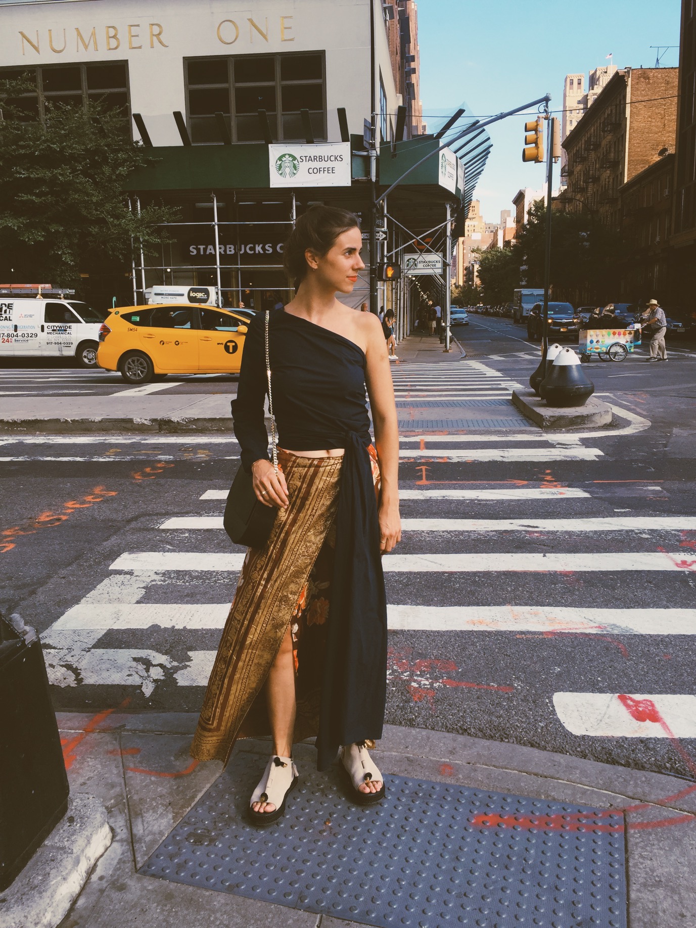 Neulich habe ich eine Mail von einer Leserin bekommen, in der sich mich fragte, ob es mir vielleicht genau so (er)gehen würde, wie ihr selbst. Es beschleiche sie zunehmend das Gefühl, vor ein oder zwei oder drei Jahren noch viel hübscher angezogen gewesen zu sein als heute, viel mutiger auch und einzigartiger. Und ja, irgendwie stimmt’s, wenn auch nicht auf die offensichtlichste Art und Weise. Als ich daraufhin nämlich ein paar Bilder der vergangenen Saisons hervor kramte, sah ich durchaus, was besagte Leserin meinte. Zwar mochte ich das, was ich da sah, nicht unbedingt lieber als meinen jetzigen Schrankinhalt und über meinen persönlichen Geschmack lässt sich sowieso mächtig streiten, aber ja, doch: 2015, 2016, 2017 und 18 zog ich tagein, tagaus goldene Pyjamahosen zum Abendessen an, BHs über Blusen, trug Tücher im geflochtenen Zopf und Picknickdecken-Taschen zur Arbeit.
