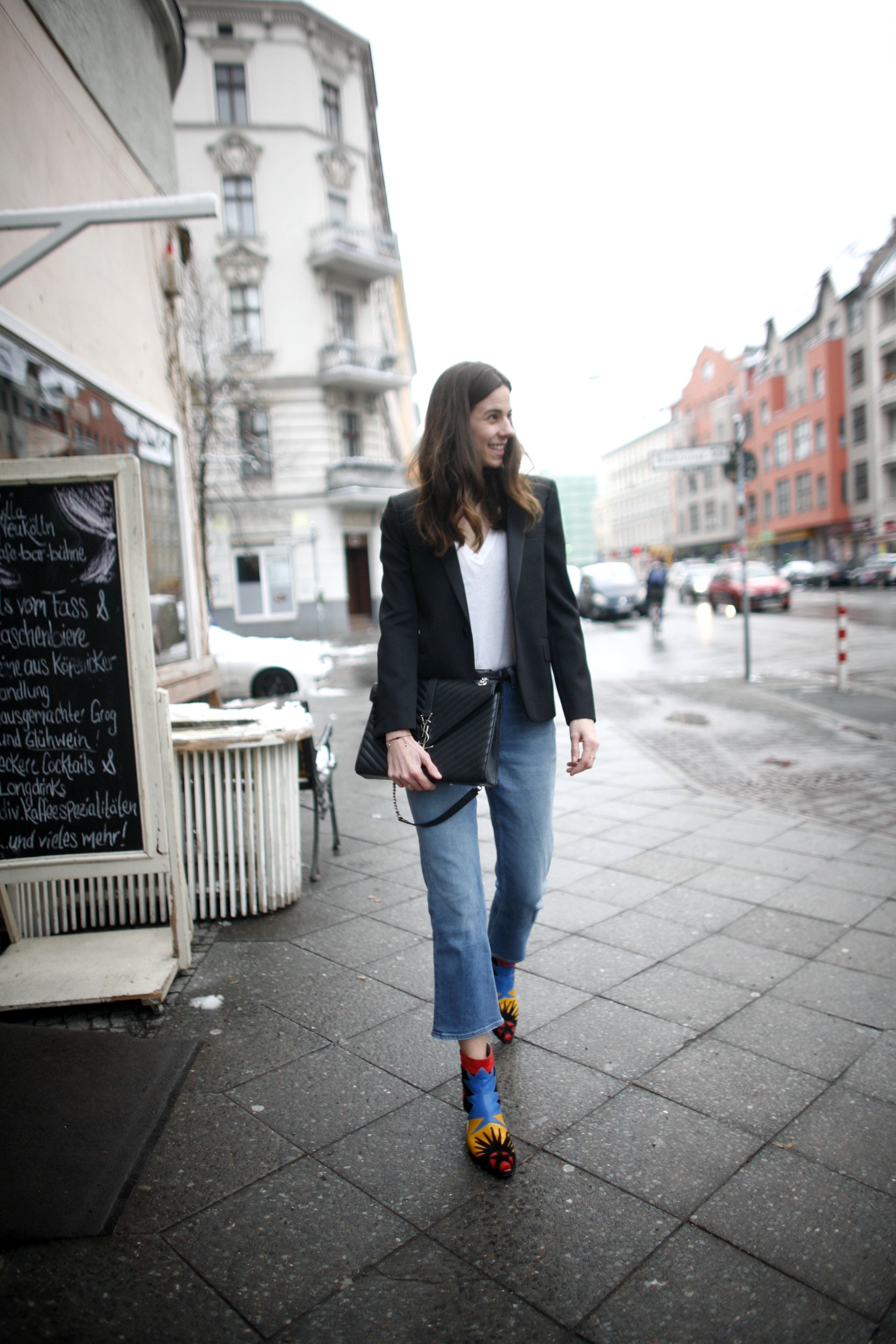 … denn im Schrank schlummert ja erstens noch dieser Ledermantel, 2nd gefunden natürlich. Zu Jeans und Chucks ist das Ganze dann auch gar nicht mehr so mutig, wie man meint. Und zweitens kaufte ich mir eines schönen Jahres diese MiuMiu Jacke im Outlet, irgendwo in der Toskana. Seither ist sie der Grund dafür, weshalb ich mich jeden Herbst auf Neue daran erinnern kann, dass ich überhaupt keine neue brauche – obwohl sie so knallig ist. Passt nämlich auch schon wieder immer, besonders dann, wenn sie eigentlich überhaupt nicht passt. Mehr Mut zu Farbe also, bitte.