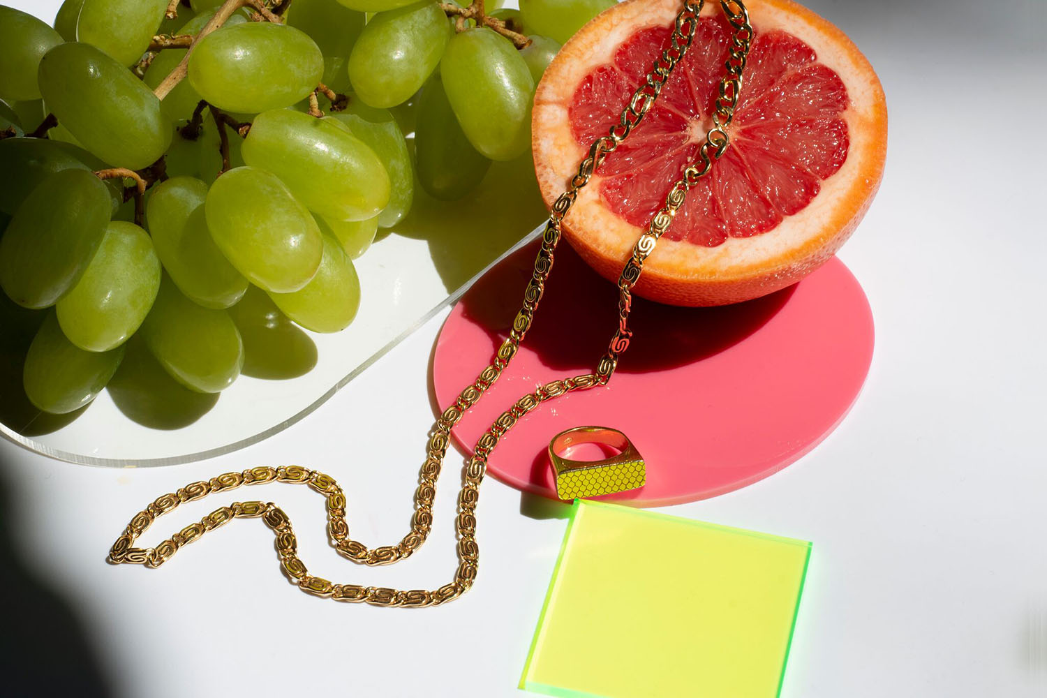 Neun Monate lang hat Jukserei mit Sanne von Girl on Kicks zusammengearbeitet, um die ultimative GOLDEN GIRLS Schmuckkollektion bestehend aus einer Auswahl von limitierten Stücken zu entwerfen. Sanne Poeze aka. Girl on Kicks ist weltweit bekannt für ihre Leidenschaft für Sneaker und Streetwear. Von dieser Passion sowie auffälligen 80er Jahre Statements inspiriert und mit dem skandinavischen Stil von Jukserei verbunden, transportiert die aktuelle Kollektion eine Neuinterpretation der Golden Girl-Kultur ins 21. Jahrhundert.