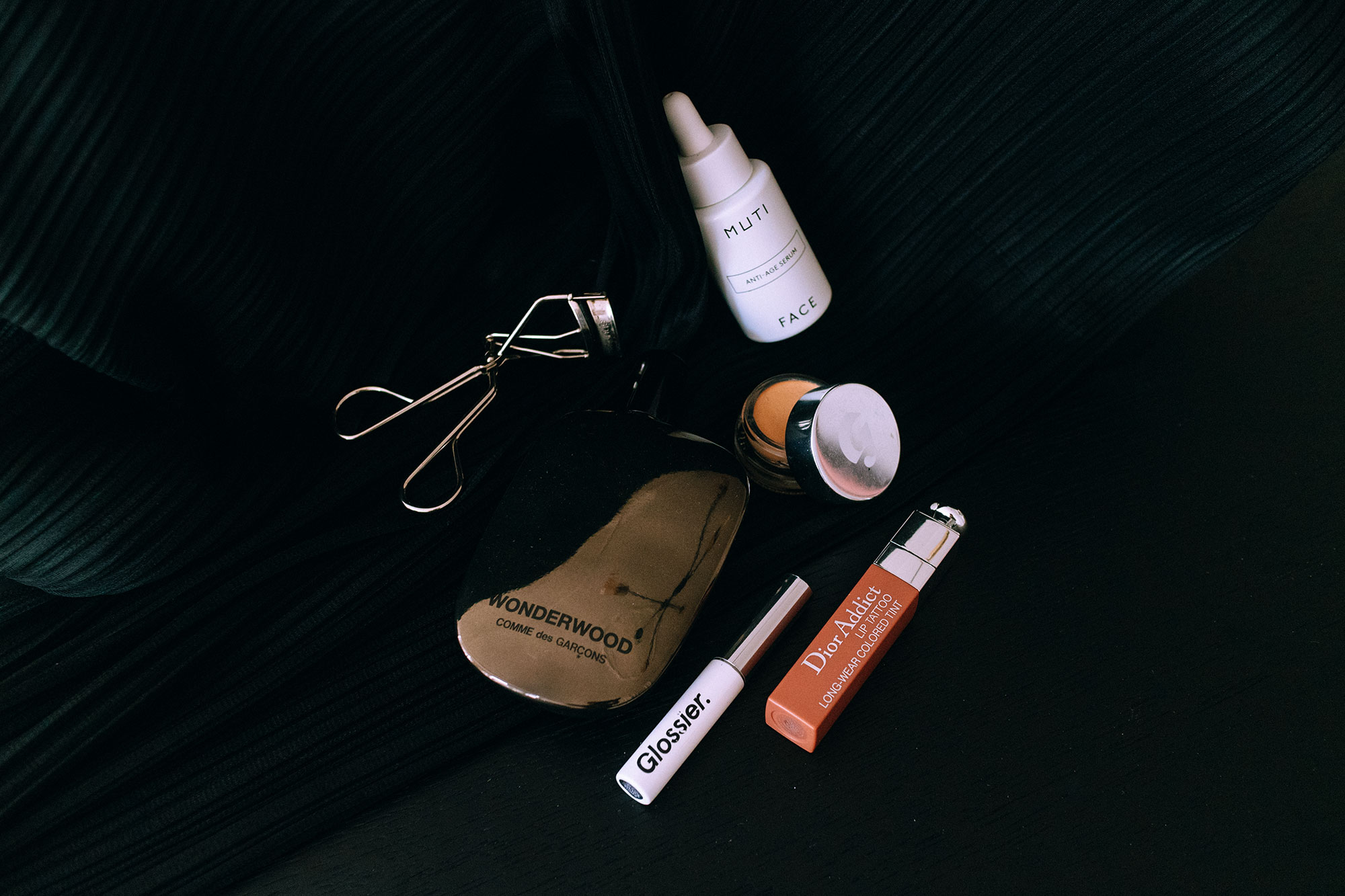 Ich konnte mich nicht entscheiden, weshalb es ein paar Teile mehr geworden sind. Meine absoluten Lieblingsschuhe sind meine Leder-Sandalen von ARKET, sie sind bequem und sehen einfach mit jedem Look toll aus. Für besondere Anlässe packe ich gerne auch mal meine Carven Mini Full Joy Ledertasche aus, die jedes Outfit aufwertet.