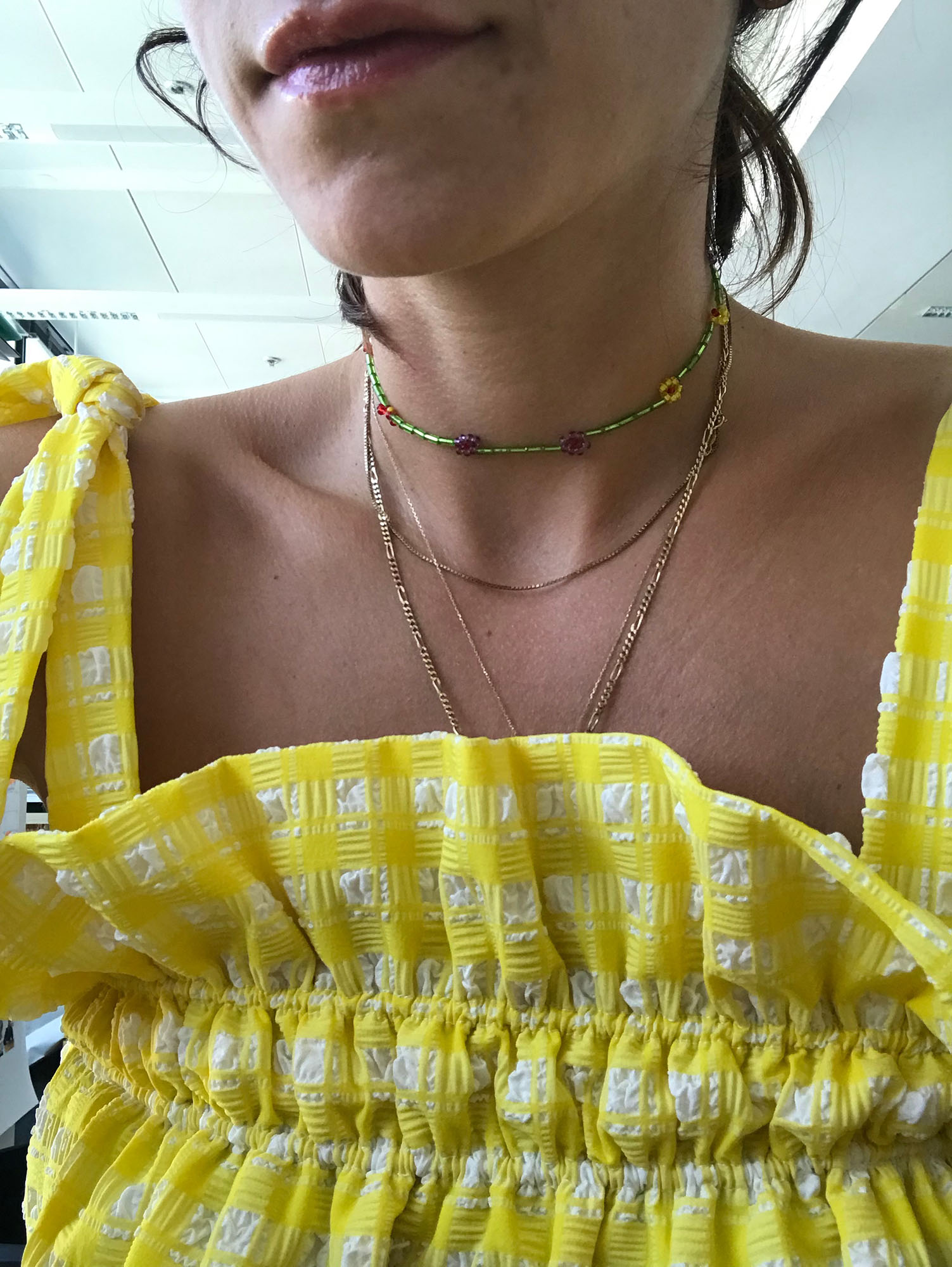 Top weiß-gelb Ganni (ausverkauft), Kette: Selbstgemacht von meiner Freundin