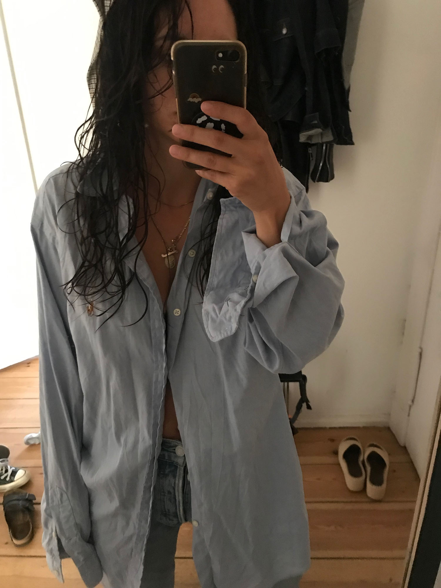 Hemd: Levis Vintage, Shirt: Tara Jarmon (alt), Hose: COS, Schuhe: Aeyde
