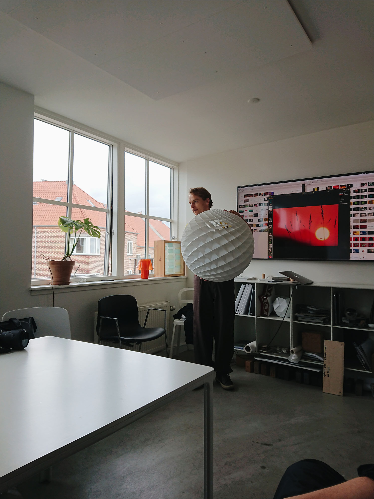 Ein kleines Schmankerl wartet bei Slaatto Design, wo uns der dänische Designer Øivind Slaatto durch sein Atelier führt und uns noch dazu einen Vortrag über Licht hält, in dem ich lerne, dass ein Raum etwa fünf bis sieben unterschiedliche Lichtquellen benötigt, um eine angenehme Atmosphäre auszustrahlen. Das müssen allerdings gar nicht immer Lampen sein, denn selbst eine Kerze, eine Reflexion einer anderen Lichtquelle oder ein Ofen können bereits ausreichen. Den Tipp speichere ich mir gedanklich sofort ab und beschließe, ihn in meinen eigenen vier Wänden so schnell wie möglich umzusetzen. Øivind Slaatto hat übrigens die Patera Pendelleuchte für Louis Poulsen designt und zeigt uns mit einem kurzen Box-Test, wie robust das Endprodukt ist – bis auf einen lauten Knall ist tatsächlich nichts passiert. Bei einem Rundgang sehen wir schließlich noch die verschiedenen Prototypen, die an der Decke seines Studios hängen, bevor wir uns schweren Herzens verabschieden müssen.