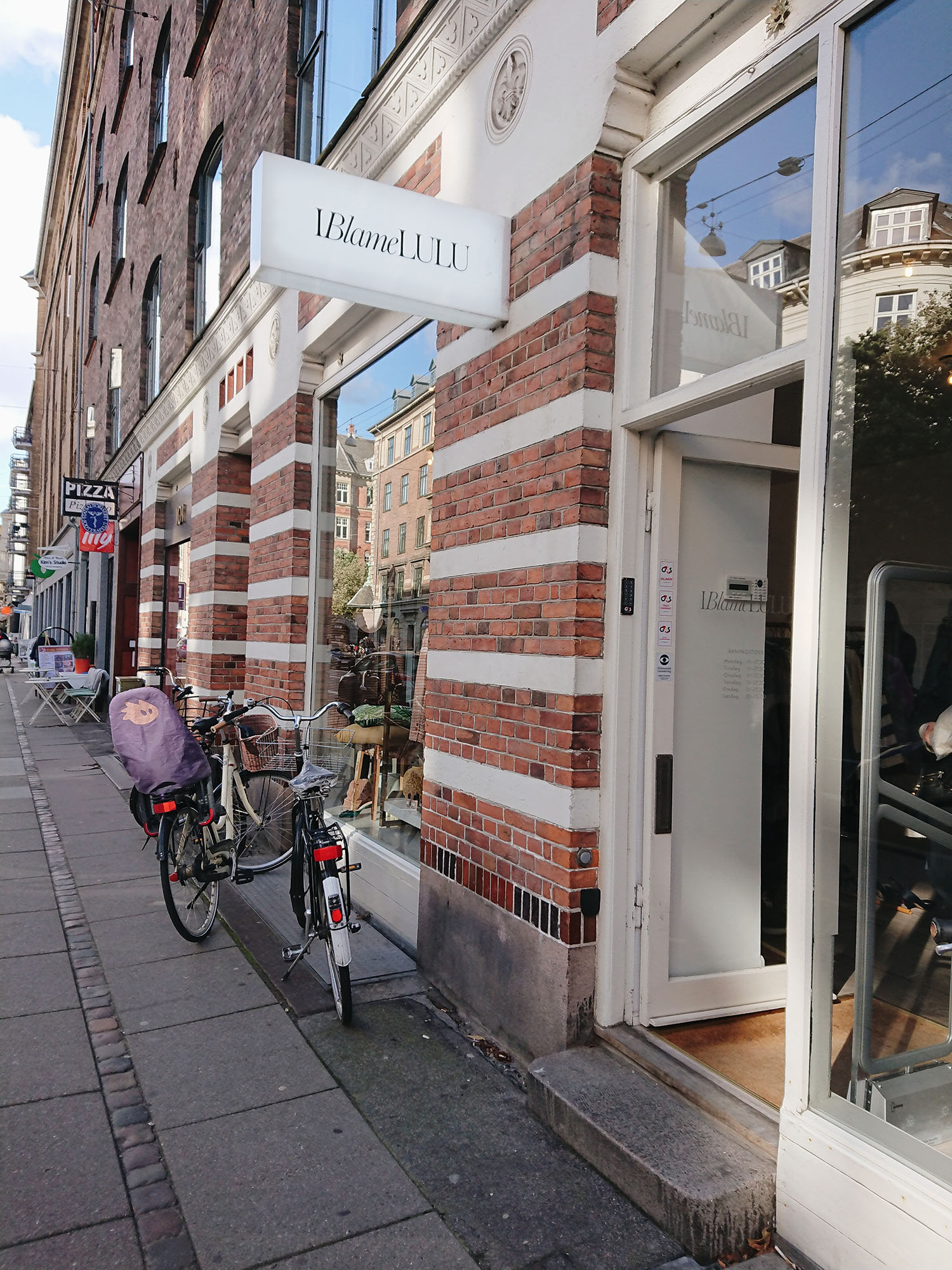 Eher zufällig stolpern wir über den Secondhand Shop I blame Lulu. Während wir uns im Laden umsehen, zieht gerade eine blonde Dänin einen funkelnden Haarreif auf (den sie später auch kauft) und repräsentiert ziemlich genau, das, was den Laden ausmacht: Mode macht Spaß, und zwar mächtig viel. Sich auszuprobieren ist erwünscht und wie könnte das wohl besser funktionieren, als mit funkelnden Haarclips und ledernen Cowboyjacken mit schwingenden Fransen?