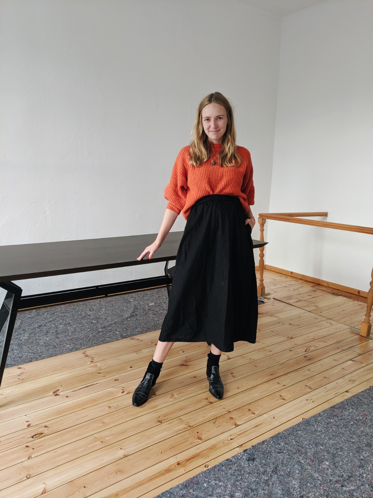 Pullover: lala Berlin, Rock: COS, Schuhe: Aeyde