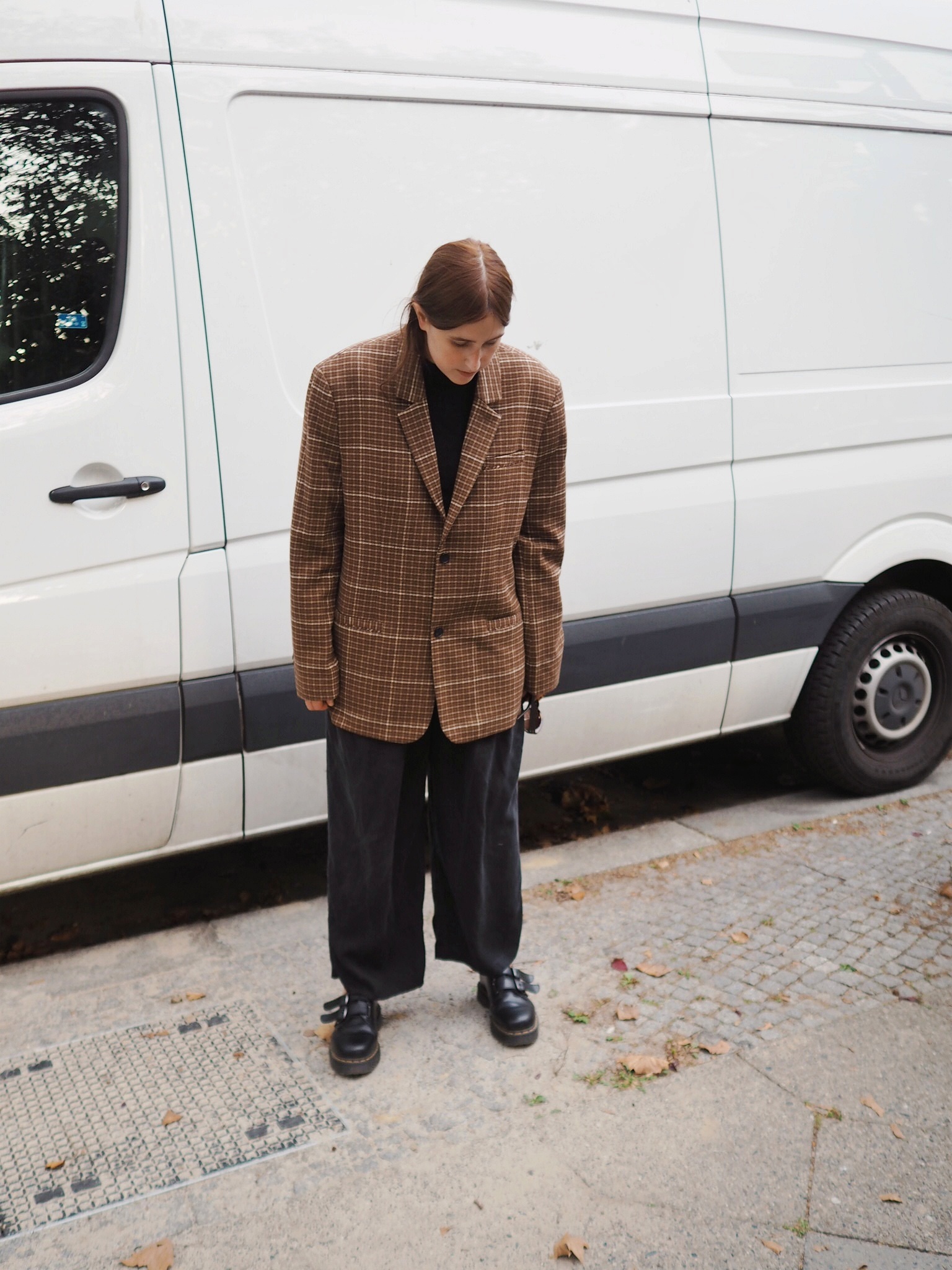 Blazer von Weekday, Hose von Weekday, Schuhe von Dr. Martens (ausverkauft)