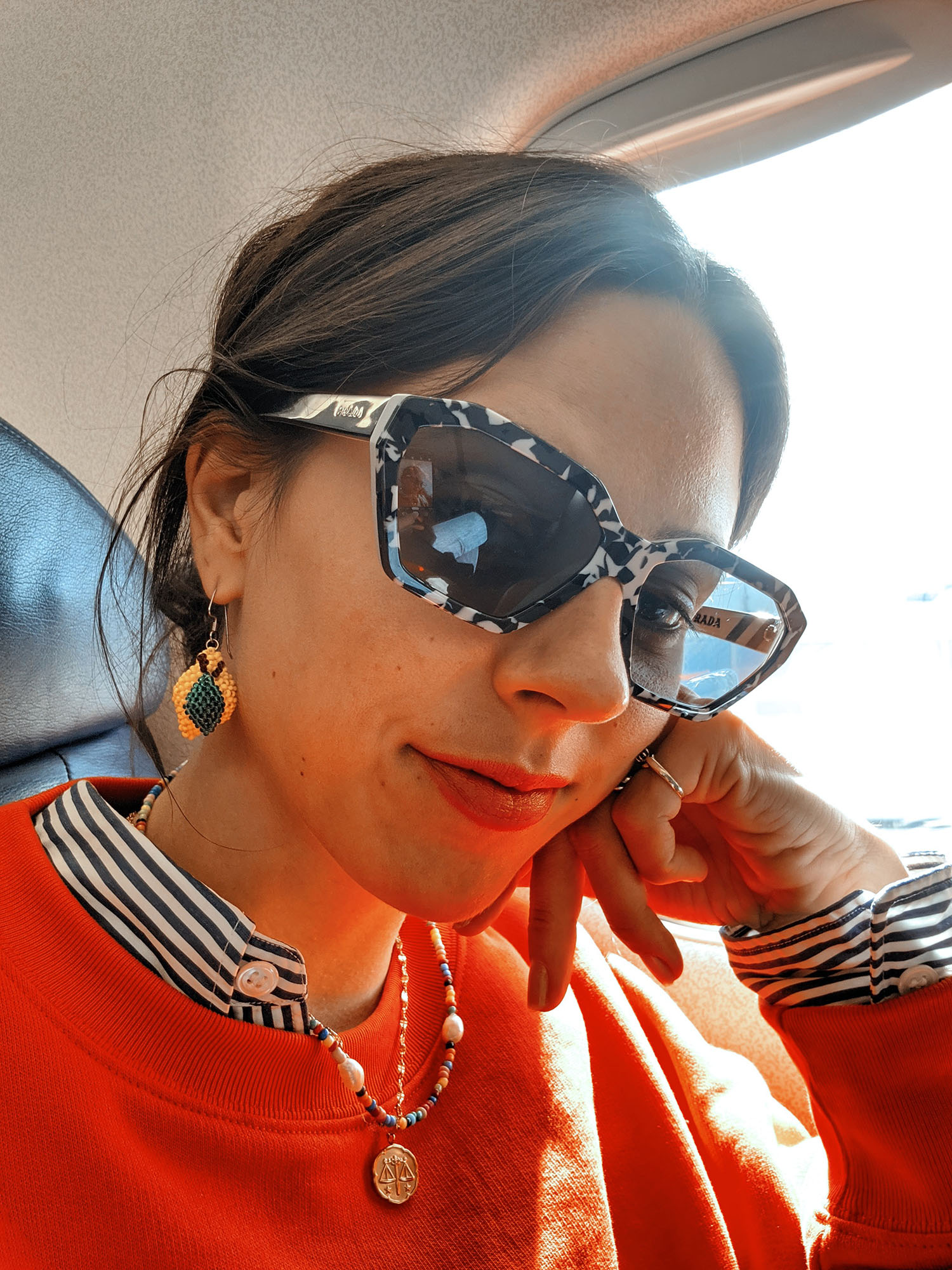 Sonnenbrille: Prada, Hemd: Comme des Gaçonnes,