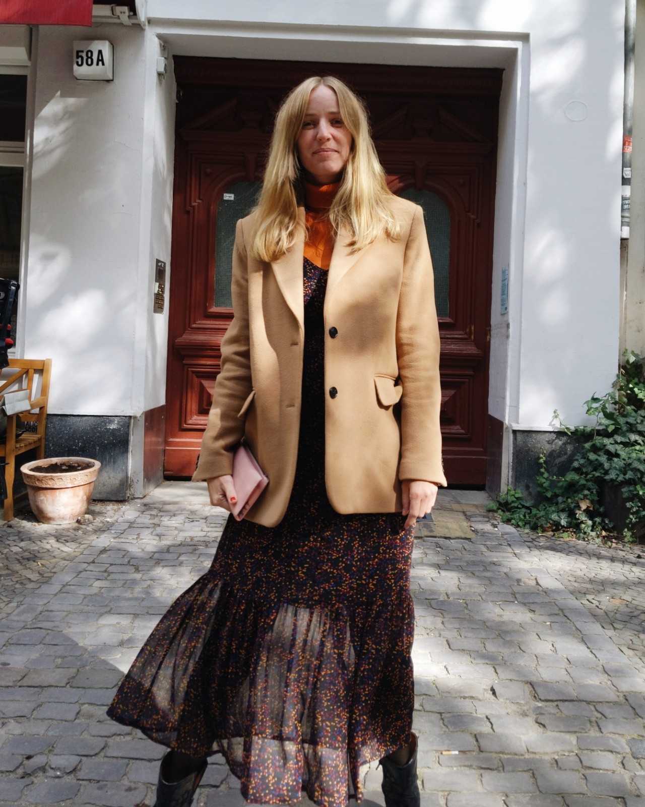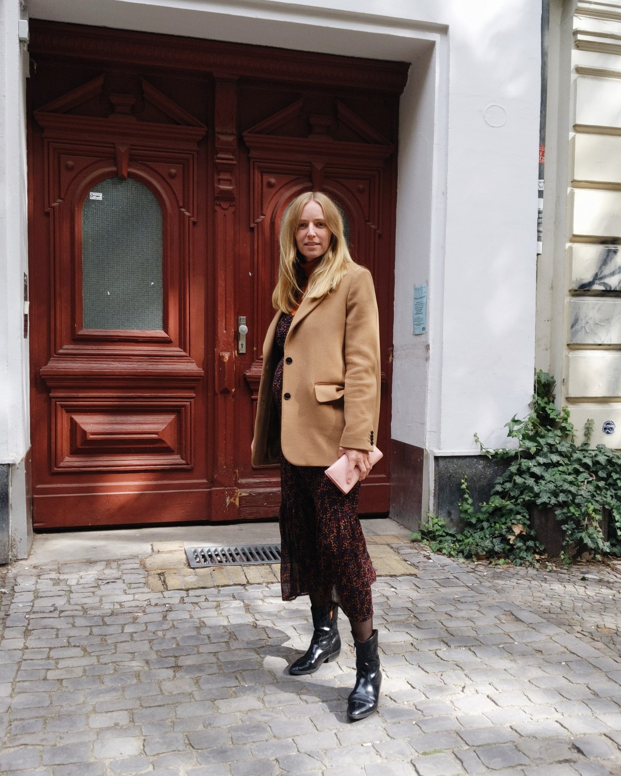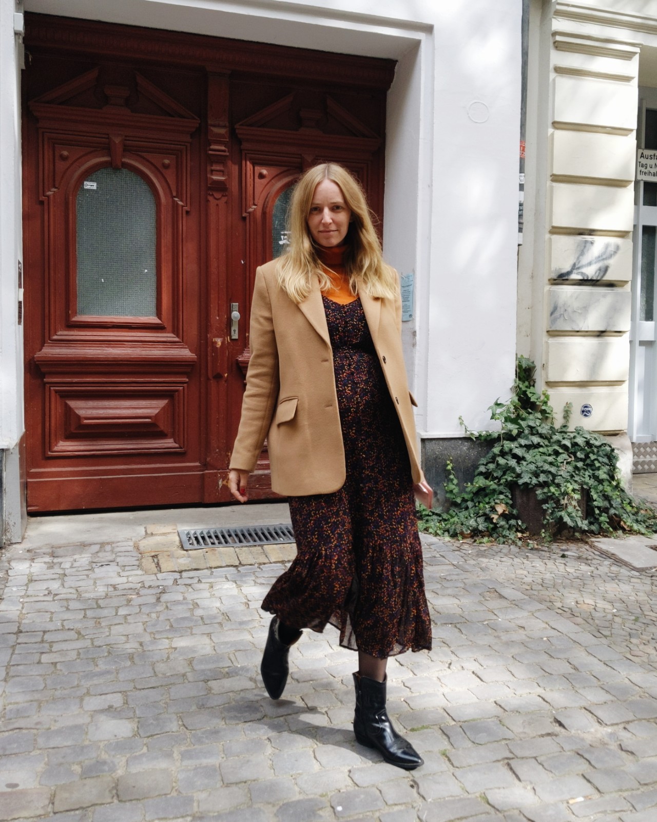 Kleid & Rollkragen: Gestuz, Strumpfhose: Hudson, Cowboyschuhe: KDG x Jane Wayne