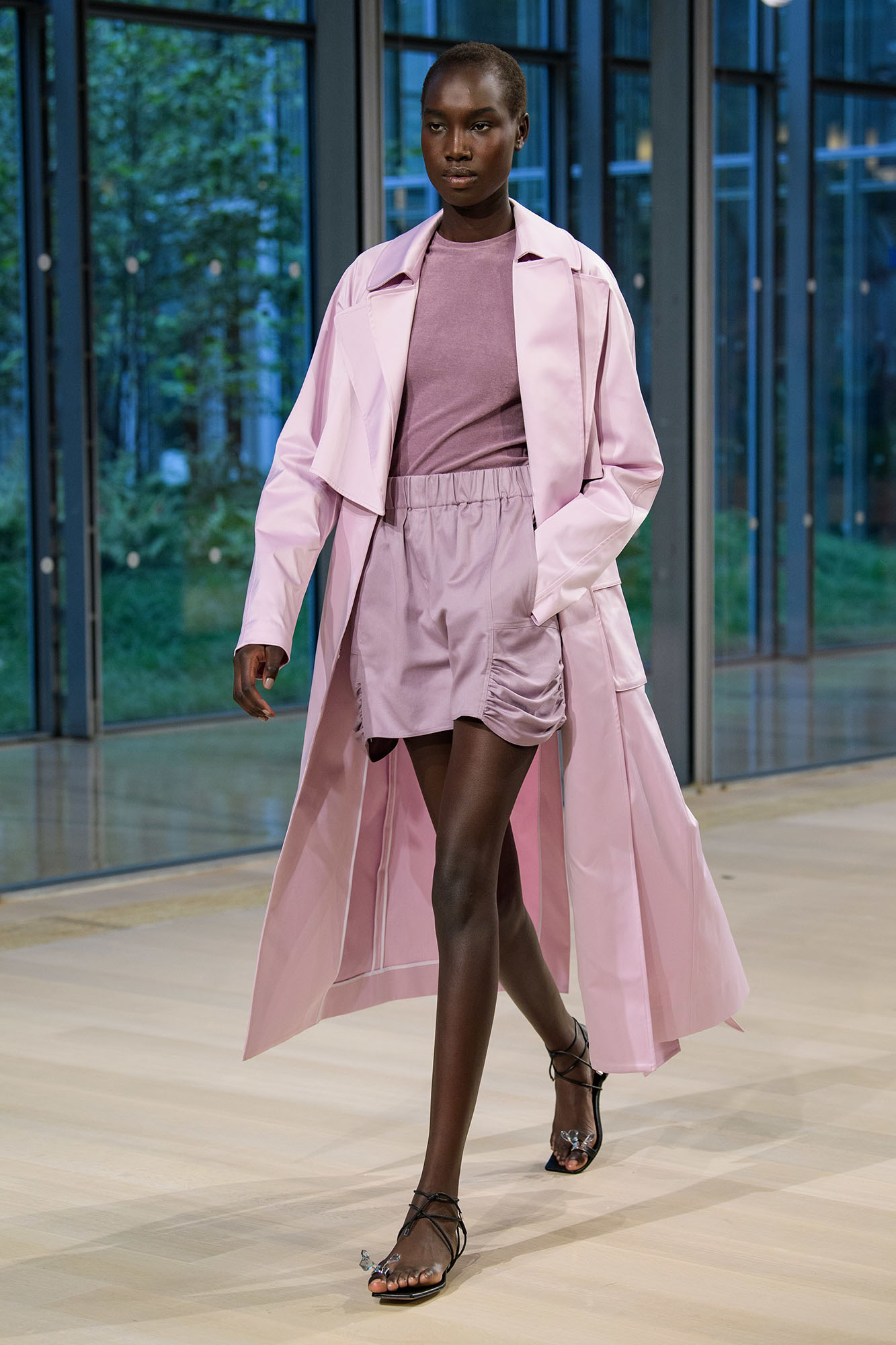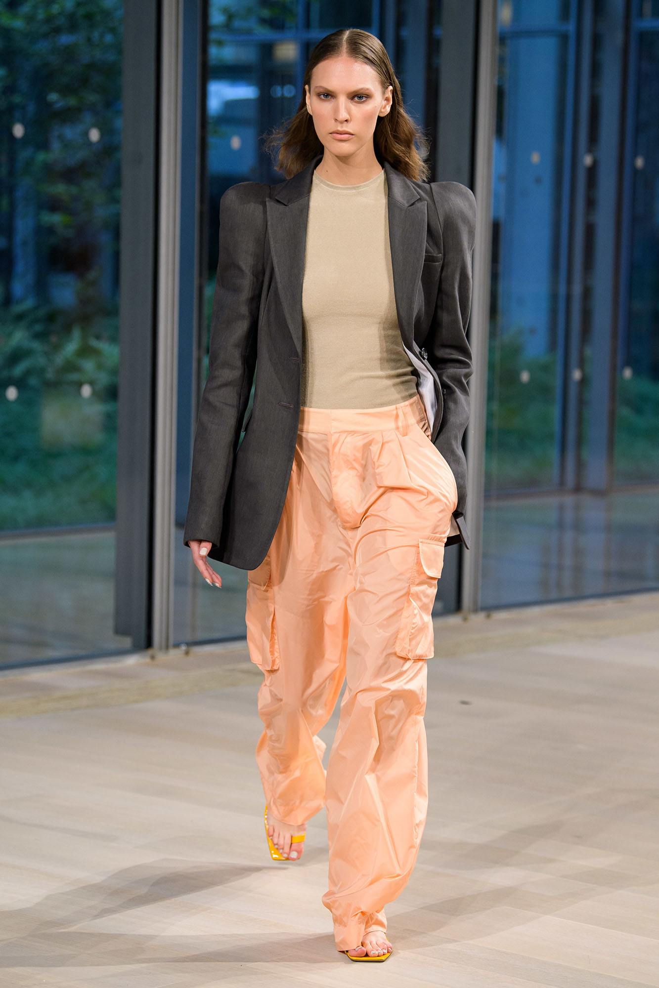 Die Kollektion des Duos Mark Thomas und Thomas Cawson ist zurückhaltend und edgy, stellt transparente Longshirts, lockere Hosen und lange, gerade geschnittene Mäntel in den Vordergrund. All-over-Looks in strahlendem Weiß wirken futuristisch, beige-farbige Varianten bilden warme Kontraste, die sich sowohl durch die Frauen-, als auch durch die Männerkollektion ziehen. Überhaupt scheint sich ein Blick auf die Herrenmode bei Helmut Lang durchaus zu lohnen, um sich den ein oder anderen Style abzuschauen und Geschlechtergrenzen auch in der eigenen Garderobe aufzuheben.