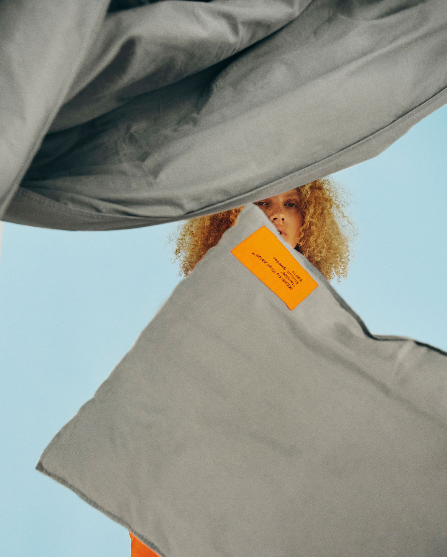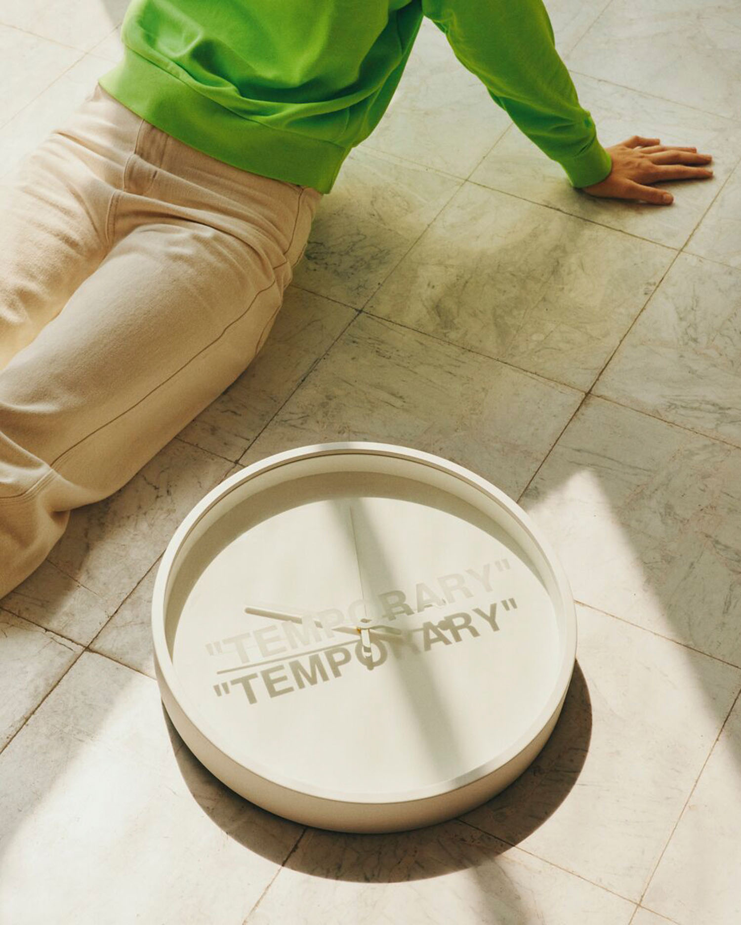 Die Kollektion verwendet klassische minimalistische Designs und baut auf ihnen mit den für Virgils Arbeit typischen künstlerischen Anspielungen und dekonstruktiven Elementen auf. Seine zum Kult gewordenen Anführungszeichen finden sich überall wieder und verleihen Alltagsgegenständen die nötige Portion Ironie.