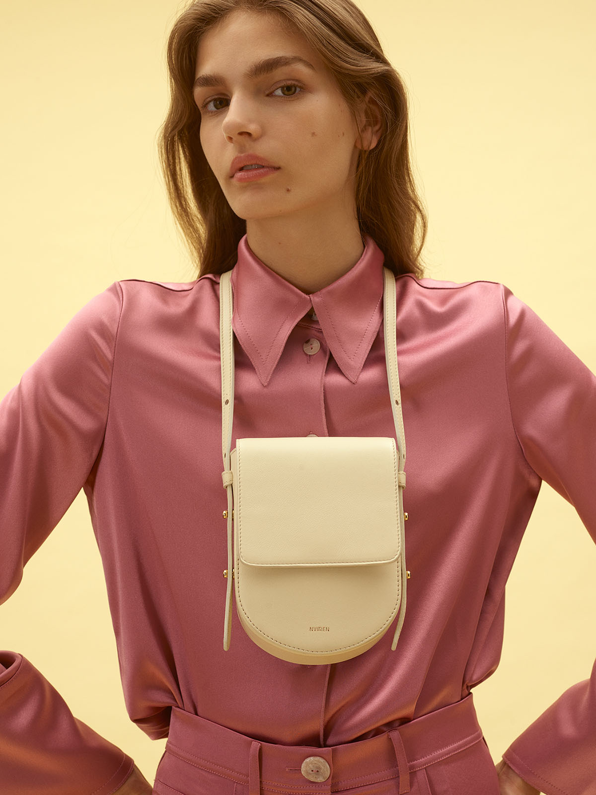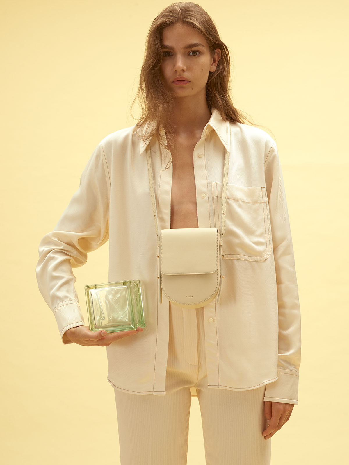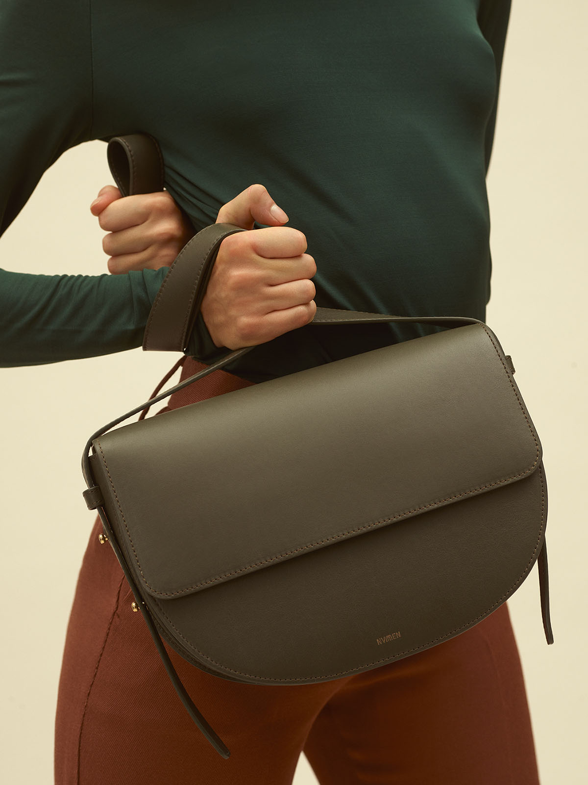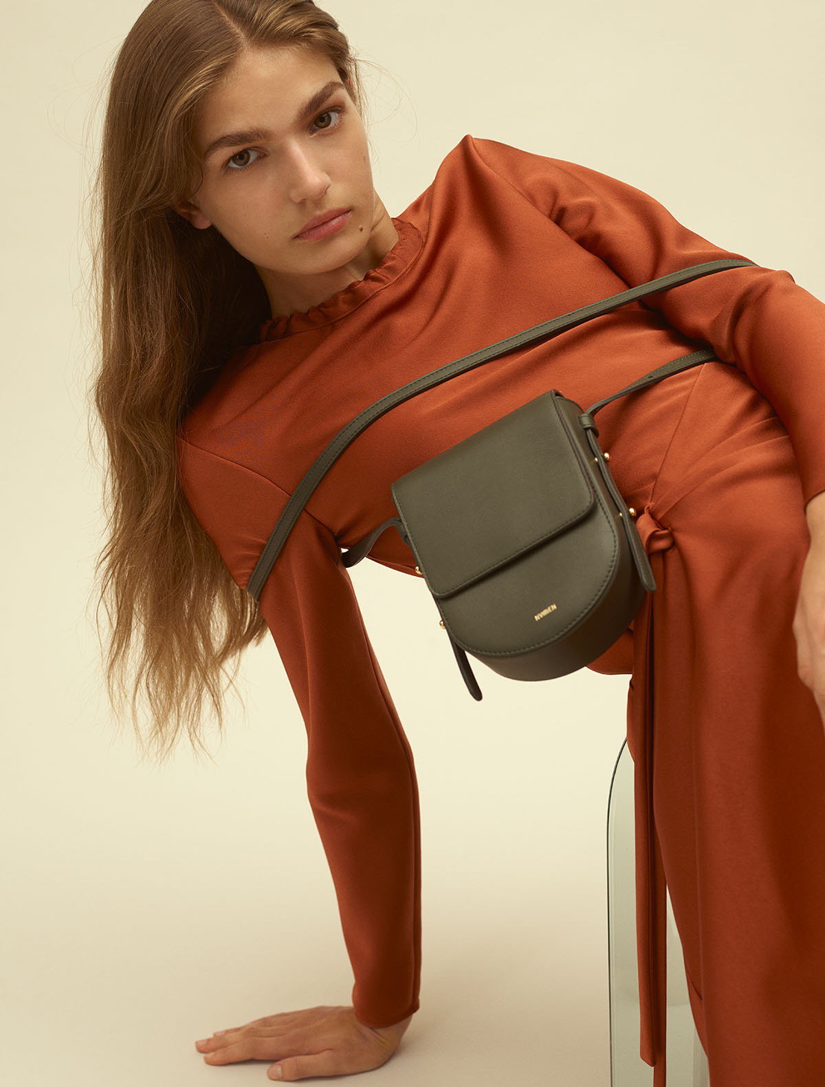 Neben insgesamt fünf Mini-Modellen und sechs Crossbody-Taschen, deren monochrome Farbigkeit von Burnt Orange, dunklem Olive bis hellem Beige reicht, präsentiert NUMEN zum allerersten Mal zwei polychrome Modelle: Die schwarz-beige Medium-Crossbody spielt gekonnt mit dem klassischen Helldunkel-Kontrast, wohingegen die dreifarbige Tasche mit cognacbraunem Overlap, roséfarbener Frontseite und bordeauxrotem Riemen und Rückseite das Key Piece innerhalb der neuen Kollektion darstellt.