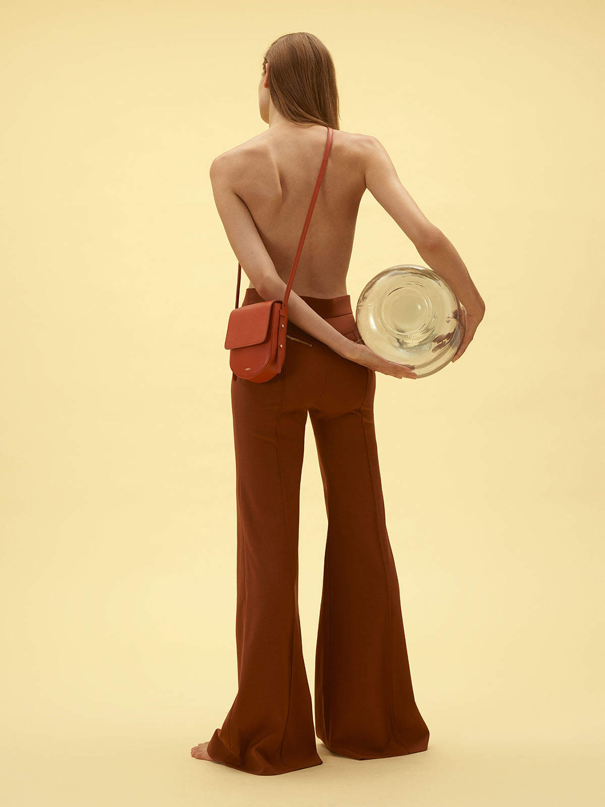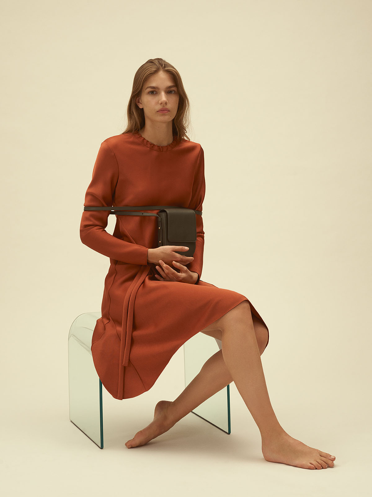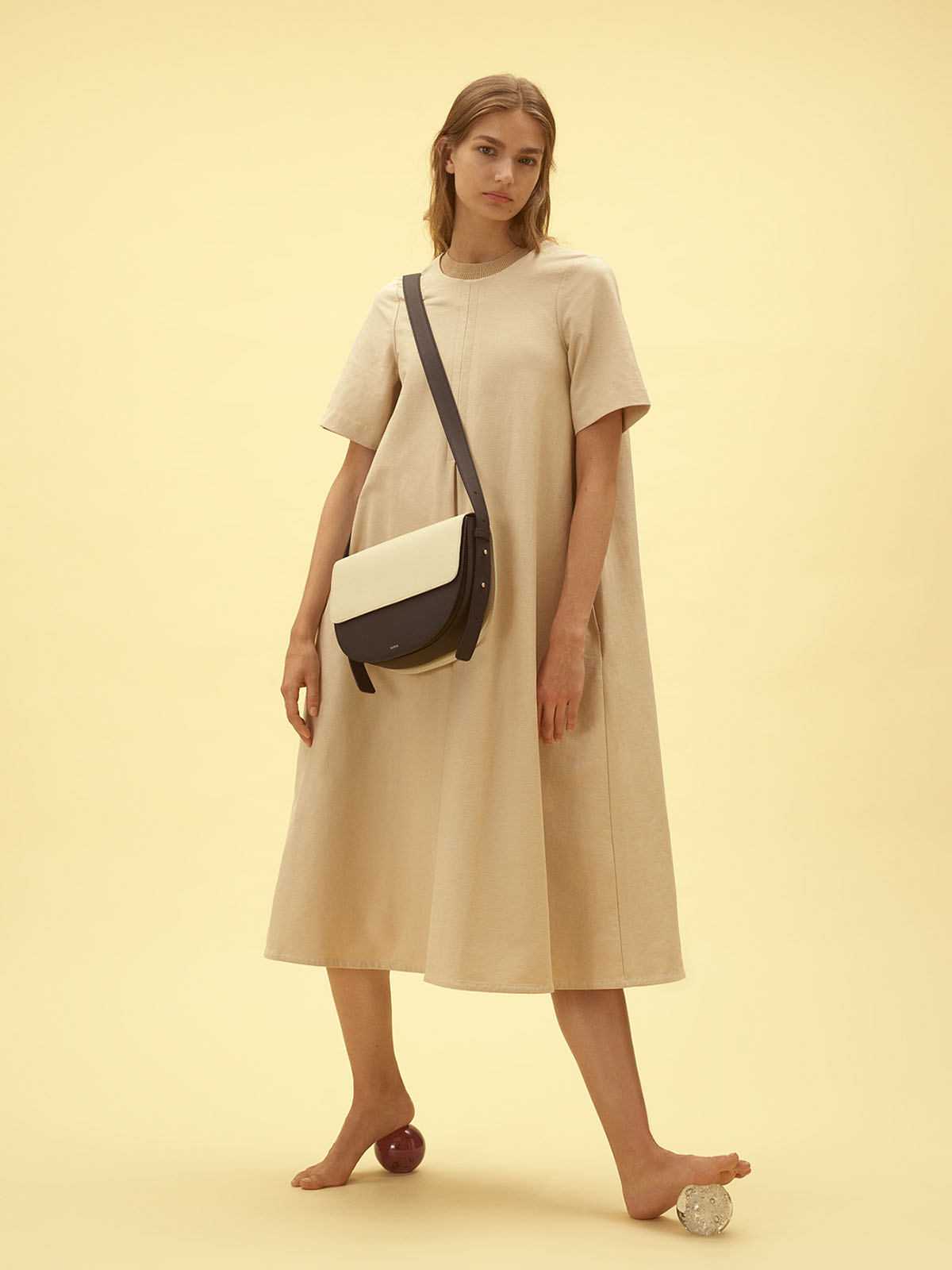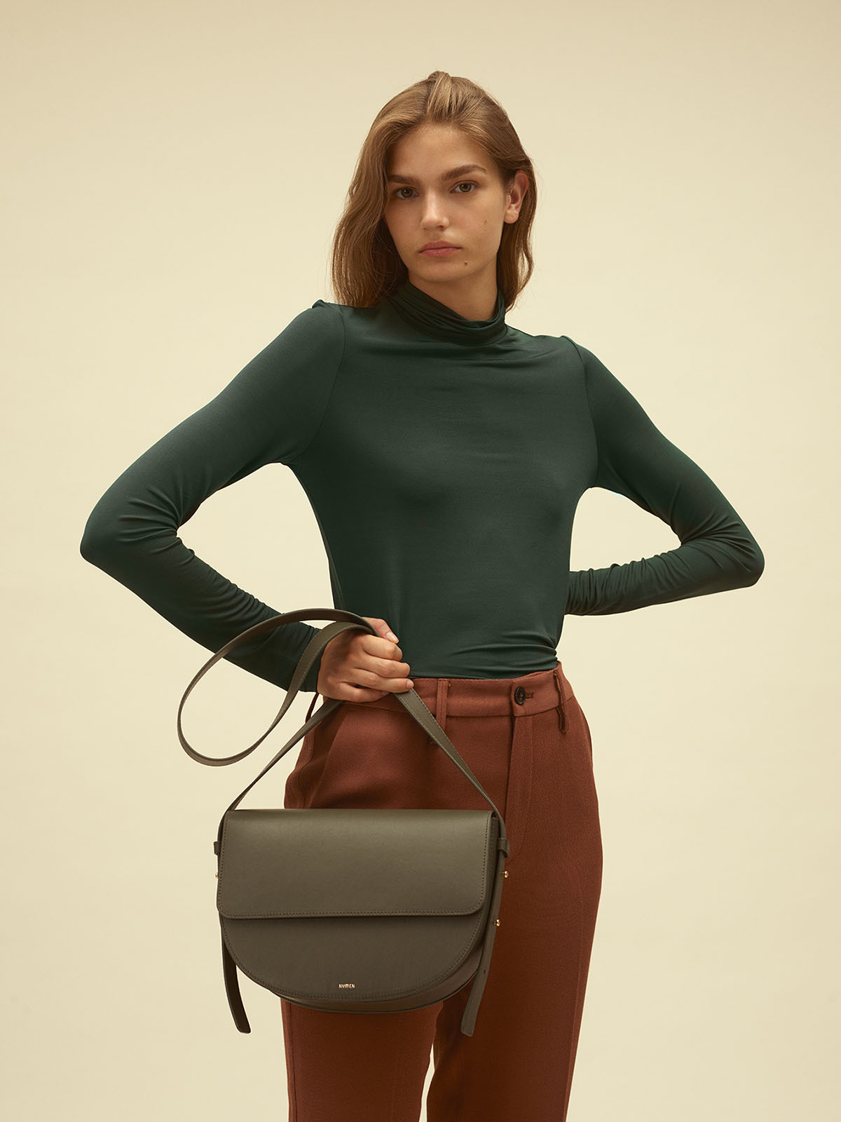 Neben insgesamt fünf Mini-Modellen und sechs Crossbody-Taschen, deren monochrome Farbigkeit von Burnt Orange, dunklem Olive bis hellem Beige reicht, präsentiert NUMEN zum allerersten Mal zwei polychrome Modelle: Die schwarz-beige Medium-Crossbody spielt gekonnt mit dem klassischen Helldunkel-Kontrast, wohingegen die dreifarbige Tasche mit cognacbraunem Overlap, roséfarbener Frontseite und bordeauxrotem Riemen und Rückseite das Key Piece innerhalb der neuen Kollektion darstellt.