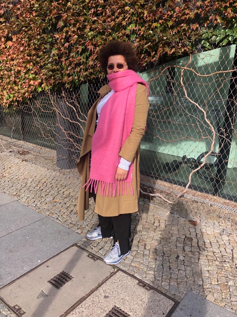 Schal von H&M (alt), Trench von Asos (alt), Hose von H&M, Sneaker von Nike (P600), Sonnenbrille von Ray Ban