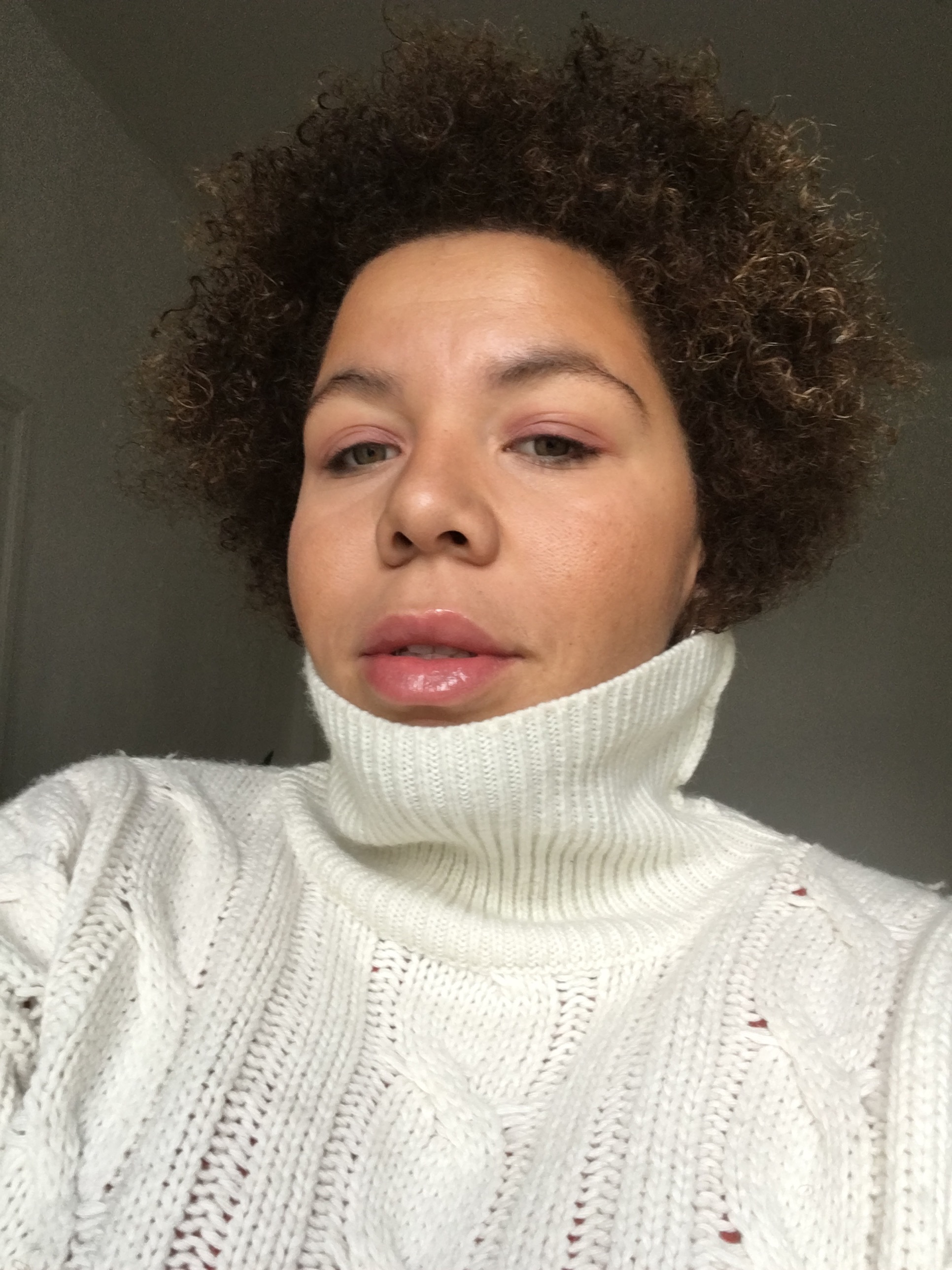 Vintage Pullover, Lipgloss von Nars („Orgasm“), Lippenstift Liquid Lip Colour von Manhatten („Stay Matte“), Bronzer von Nars („laguna“)