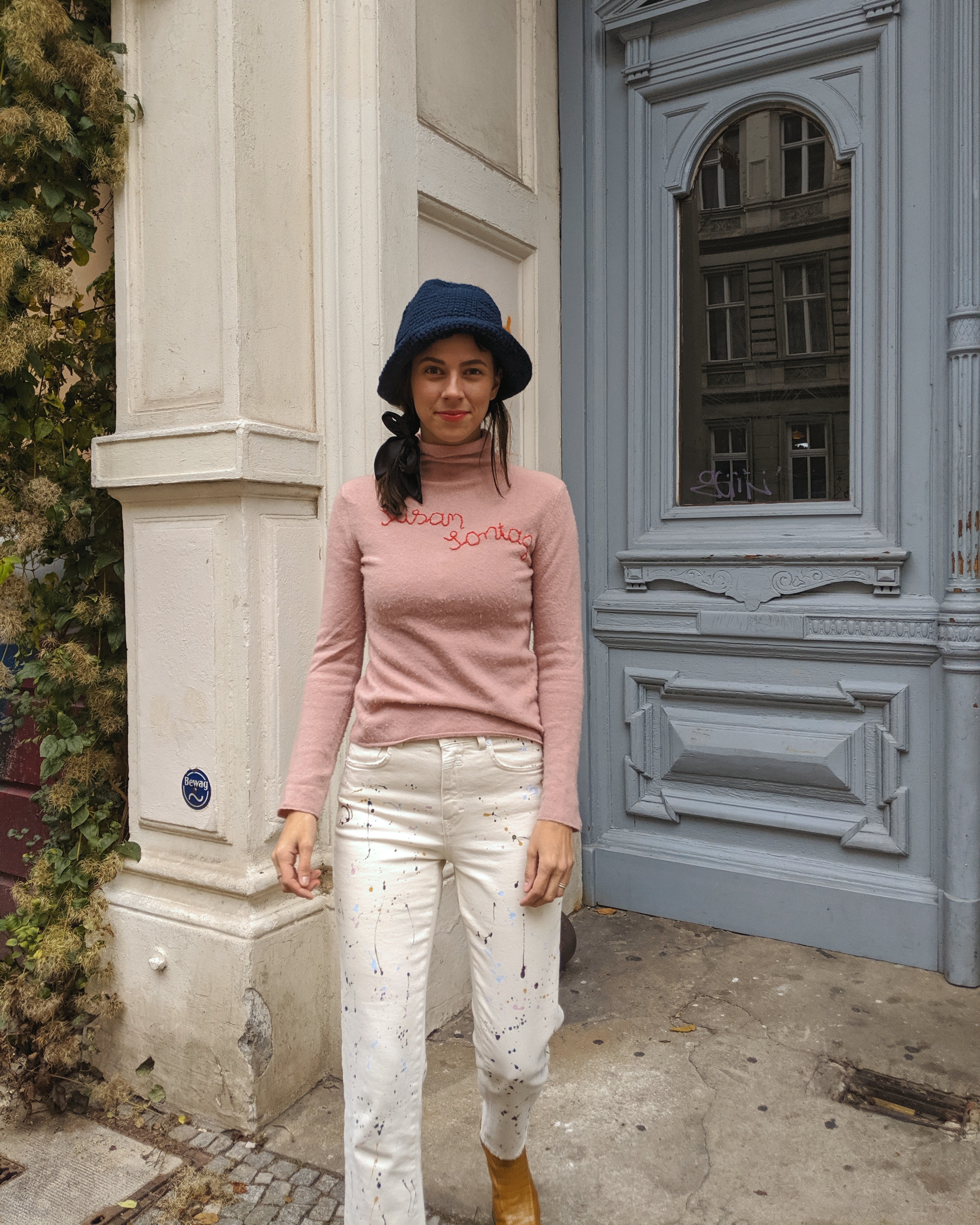 Hut: 2nd Hand, Pullover: Selbstbestickt, Jeans: Closed, Boots: Aeyde