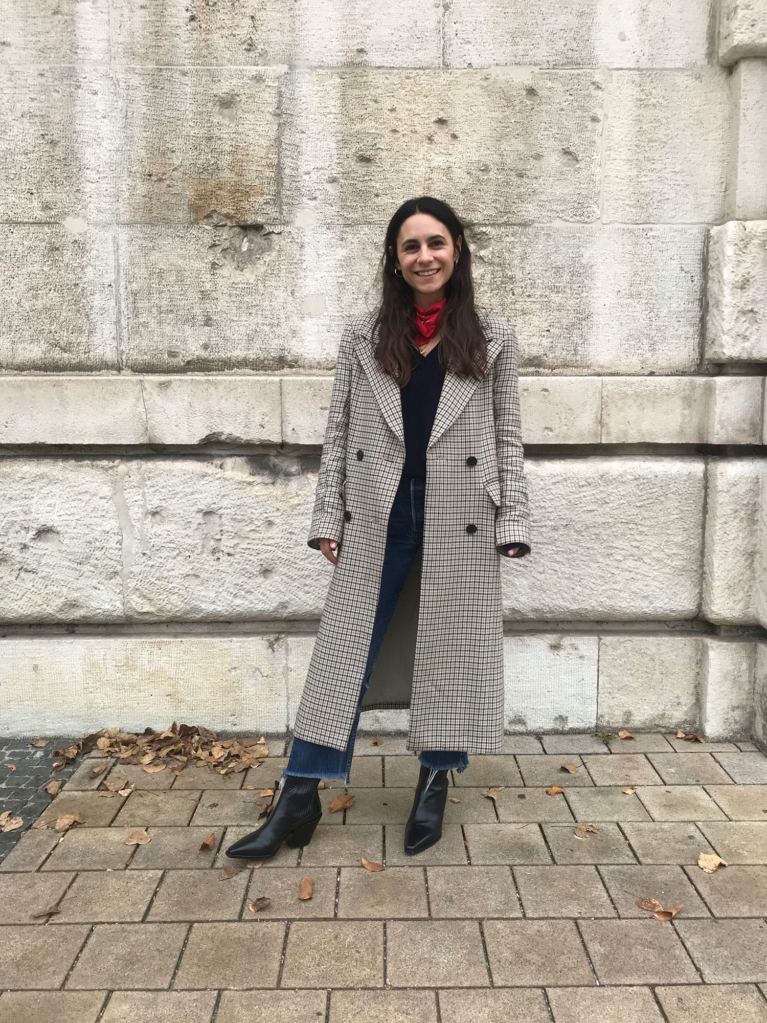 Ich mag Allrounder! In der Beauty greife ich gerne zu Produkten die vielfältig einsetzbar sind. Ein Rouge, das man auch auf Lippen und Lider schmieren kann, ist für mich ein Segen. Und so ist es irgendwie auch in der Mode. Seit fünfzehn Jahren kaufe ich mir immer wieder dieselben Nike AF1 Sneaker. Sobald diese durch sind, kommt das nächste Paar. Und für mich passen sie zu fast allem! Der neuste Zugang in meinem Repertoire sind schwarze Boots. Sie haben einen Cowboy Stiefel Einschlag und meiner Meinung nach passen sie zu allem! Ich kombiniere sie hoch und runter mit meinem kompletten Kleiderschrank − weite Schlaghosen, Jeans, Kleider und Röcke mit Strumpfhosen. Nach und nach habe ich mir hochwertige „Basics“ angelegt, dazu gehören definitiv auch mein karierter Mantel, eine Handvoll Cashmere Pullover und auffällige Ohrringe.