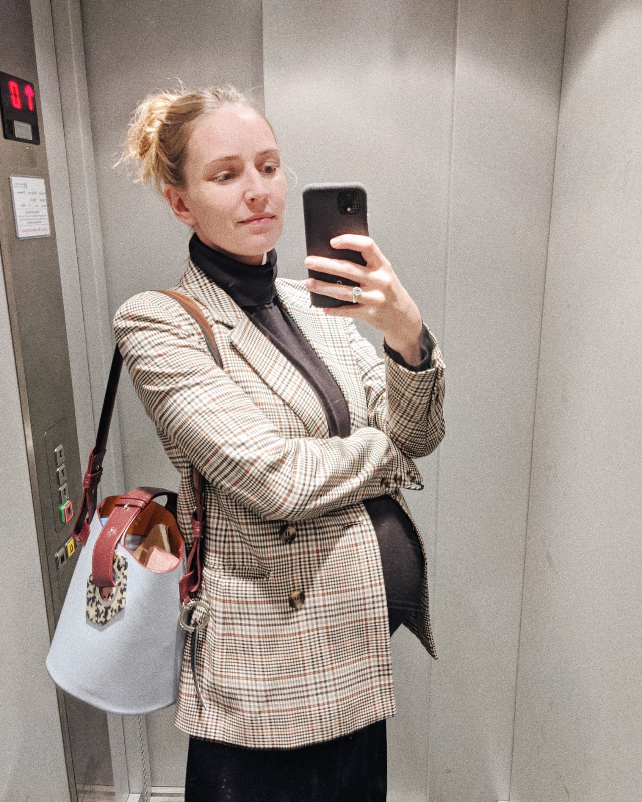 Blazer von & Other Stories (alt), Rollkragen von Arket, Hose: Braune Gummizughose von Edited, Schuhe von Aeyde, Tasche von Ganni