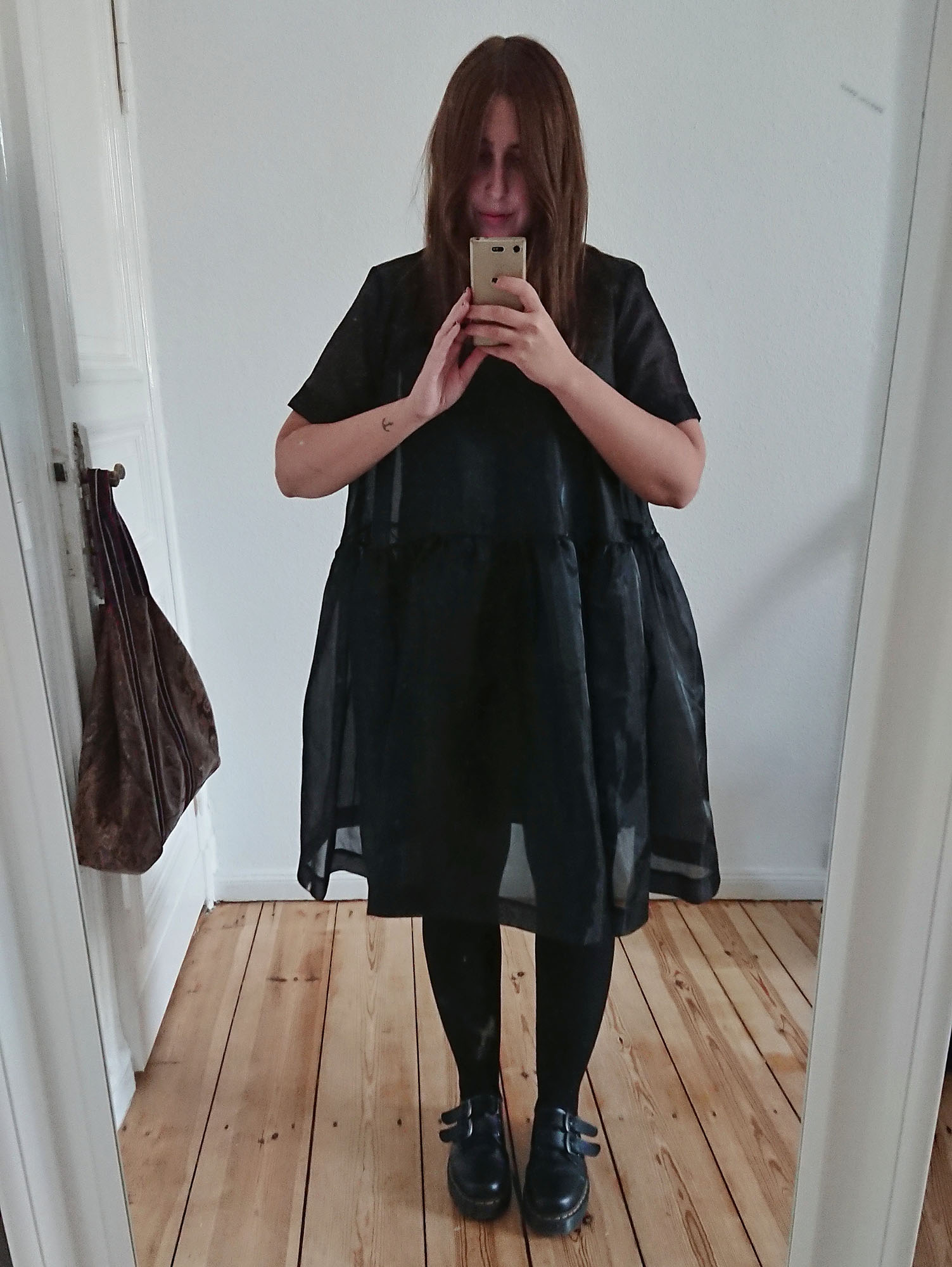 links: Kleid von Baum und Pferdgarten, Schuhe von Dr. Martens