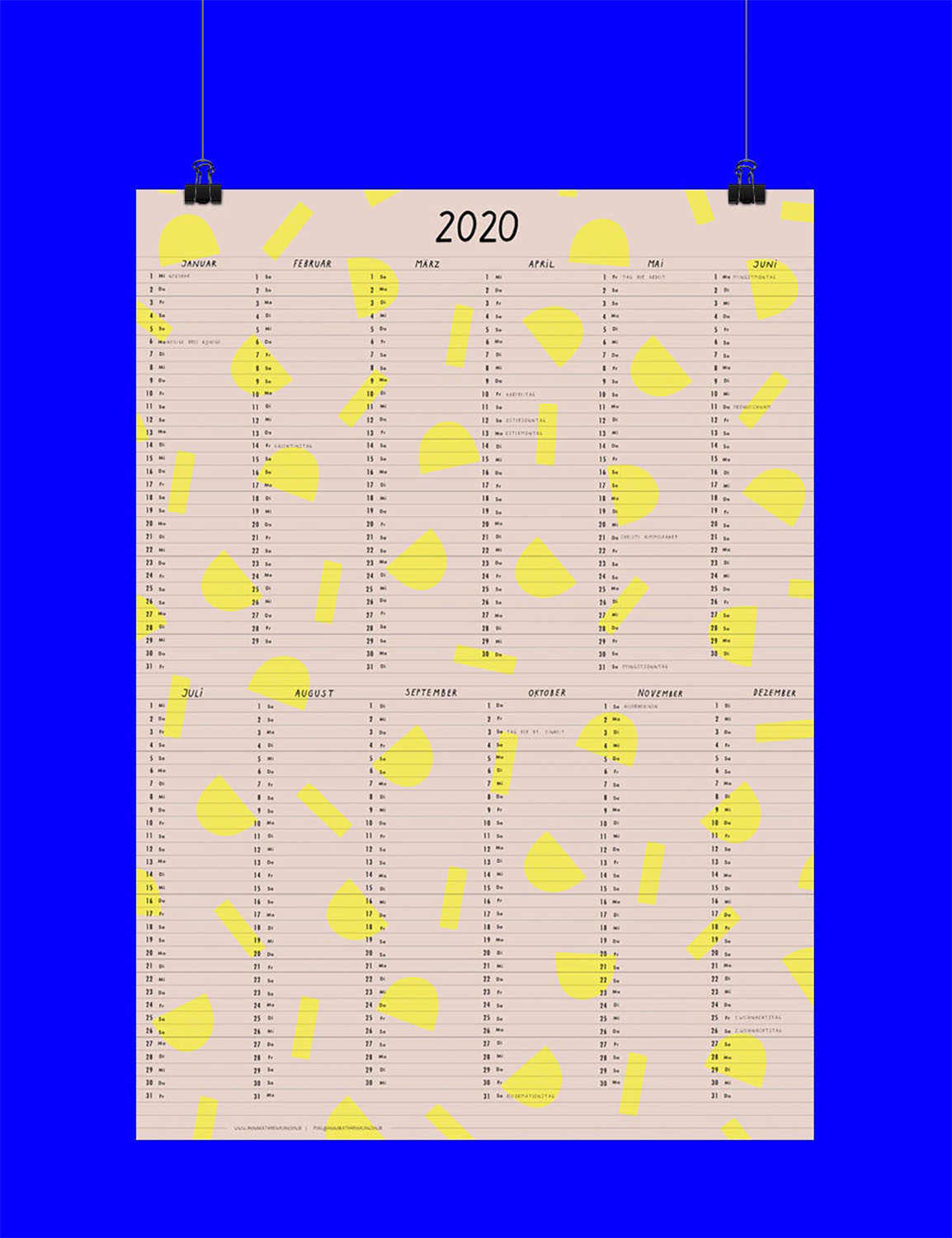 Das wilde Rätseln, wo denn die Zeit überhaupt geblieben ist, dürfte insbesondere jetzt, so kurz vor der Vorweihnachtszeit, in jedem Akt mitschwingen. Tatsächlich lief im Jane Wayne Büro bereits Mariah Careys „All I want for Christmas“, ganz ohne Schamgefühle sogar und spätestens bei einem Blick auf den Kalender wurde klar, dass da doch tatsächlich nur noch 1,5 Monate vor uns liegen, bevor das Jahr 2020 eingeläutet wird. So richtig viel ist das nicht, insbesondere, wenn bereits Pläne geschmiedet werden, etwa für den Kurztrip zu Freund*Innen, die — wie das Leben so will — fortan überall verstreut leben, oder gar für den eigenen Geburtstag, an dem vielleicht, nach so langer Zeit, mal wieder etwas Besonderes anstehen darf. Höchste Zeit also, sich auf die Suche nach einem neuen Wandkalender zu machen, damit zwischen Stress und Chaos auch im neuen Jahr wirklich nichts verloren geht. Neben Terminen sollten da vielleicht auch einfach mal wieder schöne Dinge eingetragen werden, ein Home Spa vielleicht, ein Konzertbesuch der Lieblingsband oder ein Gang ins Museum, nur um stundenlang vor einem Werk, das man so richtig mag, zu sitzen. In puncto Selbstliebe können wir uns meist ja doch noch steigern, warum also sollten wir uns nicht auch einfach mal ein bisschen daran erinnern? Für alle Taten, Geburtstage, Vorsorgeuntersuchungen, Feierlichkeiten und Wichtigkeiten habe ich die vielleicht schönsten Wandkalender für 2020 ausfindig gemacht.