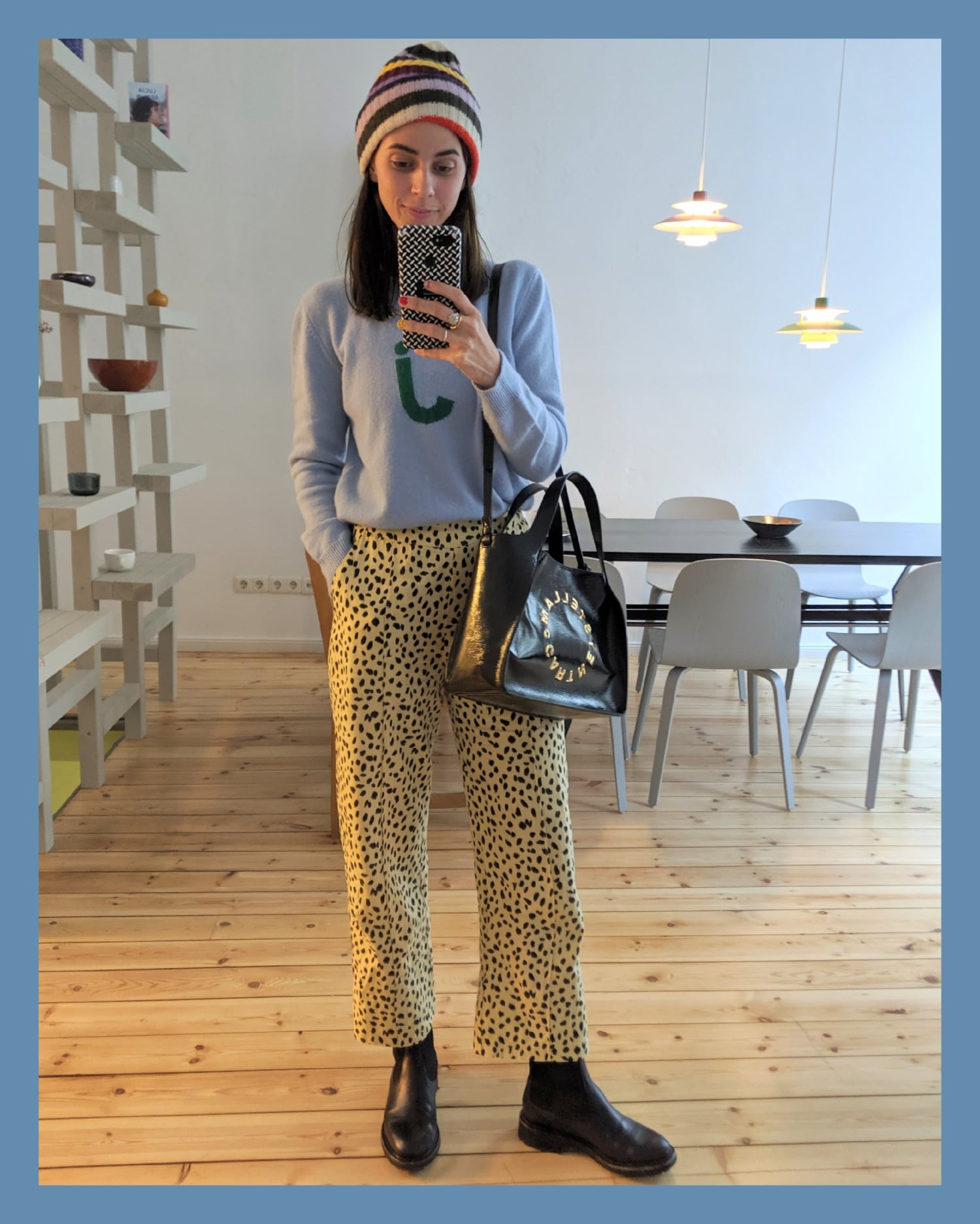 Mütze: Ganni (älter), Pullover: Hades Wool, Hose: Edited the Label (älter), Boots: Arket