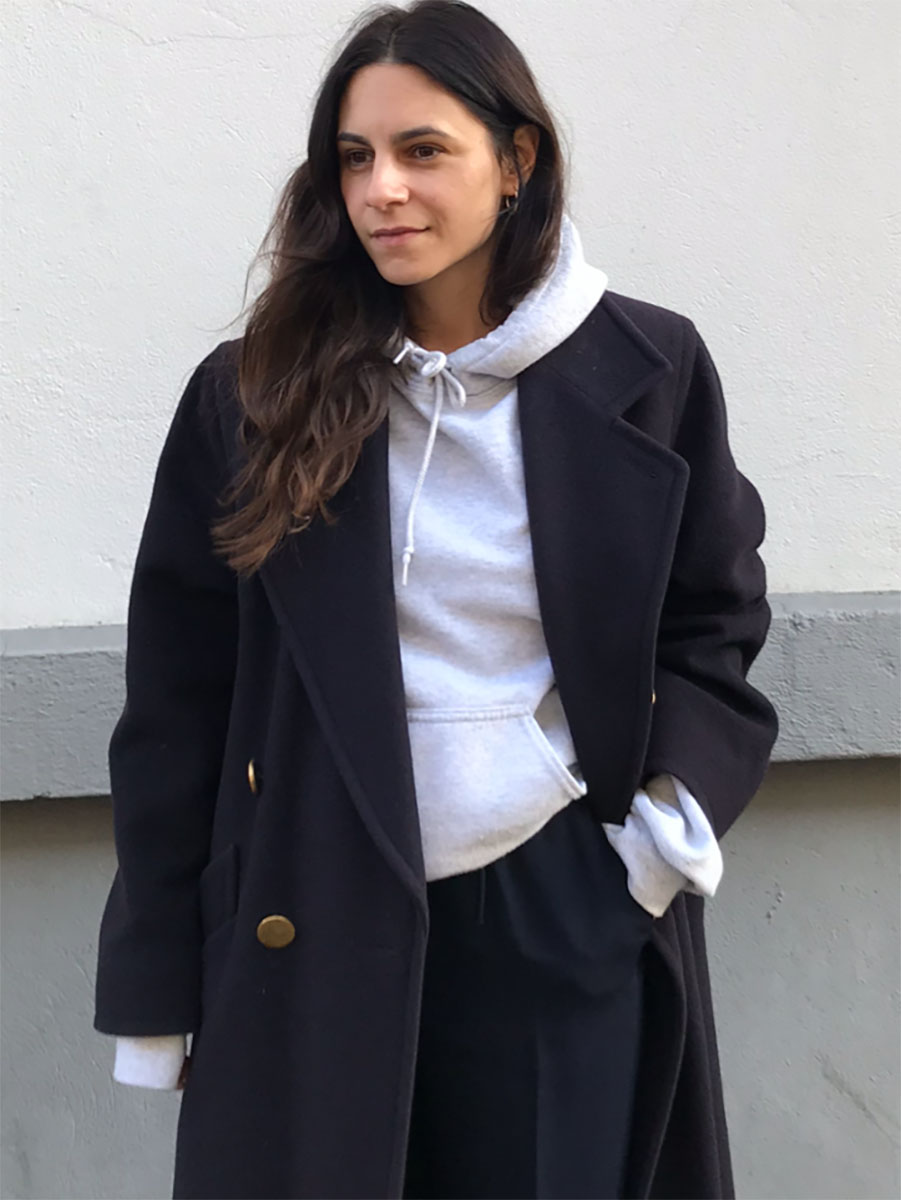 Secondhand Mantel, Hose von Mango (alt, ähnlich hier), Hoodie von Gildan