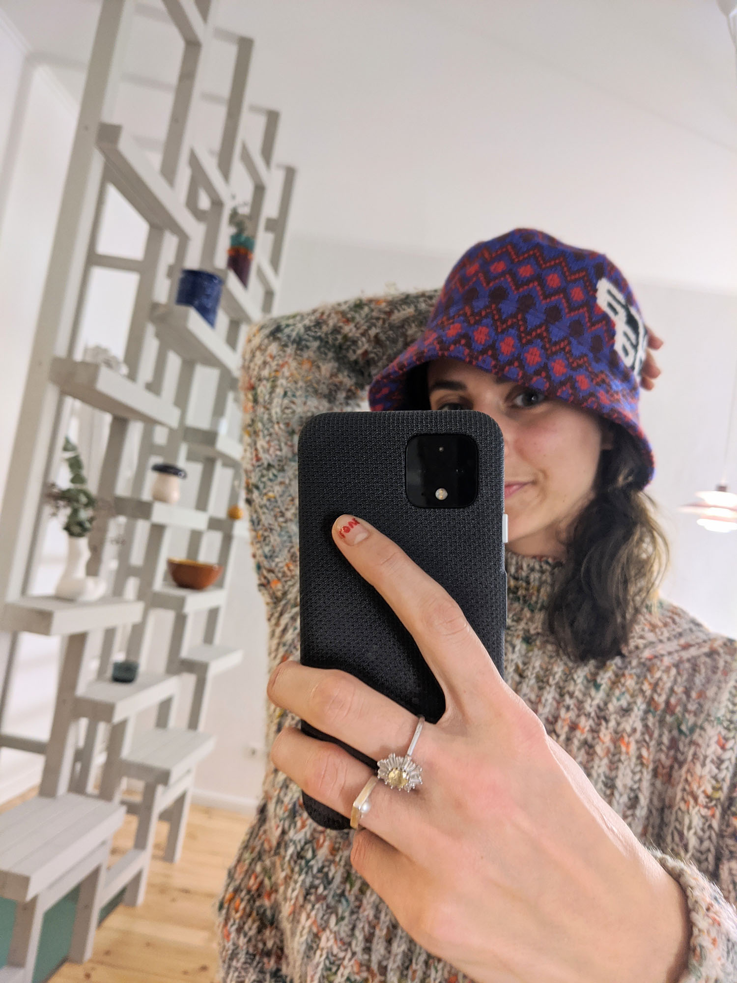 Mütze und Pullover von Edited x Blanca Miro, Ohrringe: Aeyde