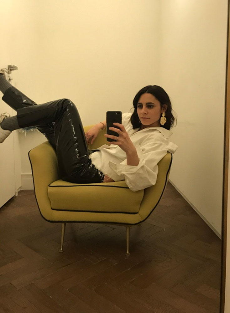 Lackhose alt von H&M (ähnlich hier), Hemd: Secondhand ist aber von Tschibo, Sneaker: Nike AF1, Ohrringe alt Mango (ähnlich hier)