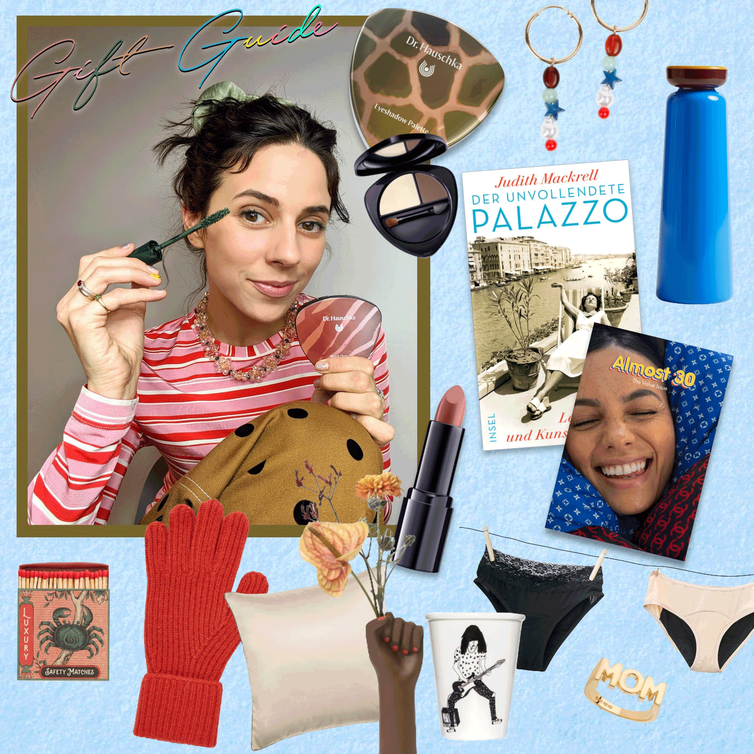 Seidenkissen – von exakt jenen reden so viele, aber sich selbst eines gönnen, das kommt den meisten nicht in die Tüte und das, obwohl es als bewiesen gilt, dass Seide in der Nacht jedem Haarbruch und Spliss vielleicht sogar noch effektiver an den Kragen geht als jede andere Pflege. Make Up – auch hier gehe ich mit, ohne jeden Zweifel. Hätte man mir selbst etwa keine Freude mit der grünen Mascara von Dr. Hauschka bereitet, wäre ich womöglich nie selbst darauf gekommen, dass diese Farbe für mein Gesicht eine Idee der allerersten Sahne ist. Auch der obige Lippenstift wohnt ab sofort in meiner Handtasche, er pflegt nämlich und unterstützt, so finde ich, die eigene Lippenfarbe mit einem zusätzlichen Hauch von Glanz. Lesestoff – das Buch „Der unvollendete Palazzo“ über die Leben von Peggy Guggenheim, Luisa Casati und Doris Castlerosse wurde mir von meinem Lieblingsbuchhändler (Kommedia an der Markthalle!) höchstpersönlich ans Herz gelegt und hallo, das hier ist eine der besten Lektüren des Jahres, ähnlich wie die neue Ausgabe von „Almost 30“. Die „Value Issue“ ist für alle geeignet, die ihr mordsmäßig mögt. Noch ein Geschenk, das ich gern allen Menschen, die regelmäßig bluten, schenken würde: Periodenunterwäsche. Sowas Geniales. Ist nicht nur bequem, sondern lindert auch diese unnötigen Schmerzen, die entstehen, wenn sich die Periode im Tampon staut. Hurra.