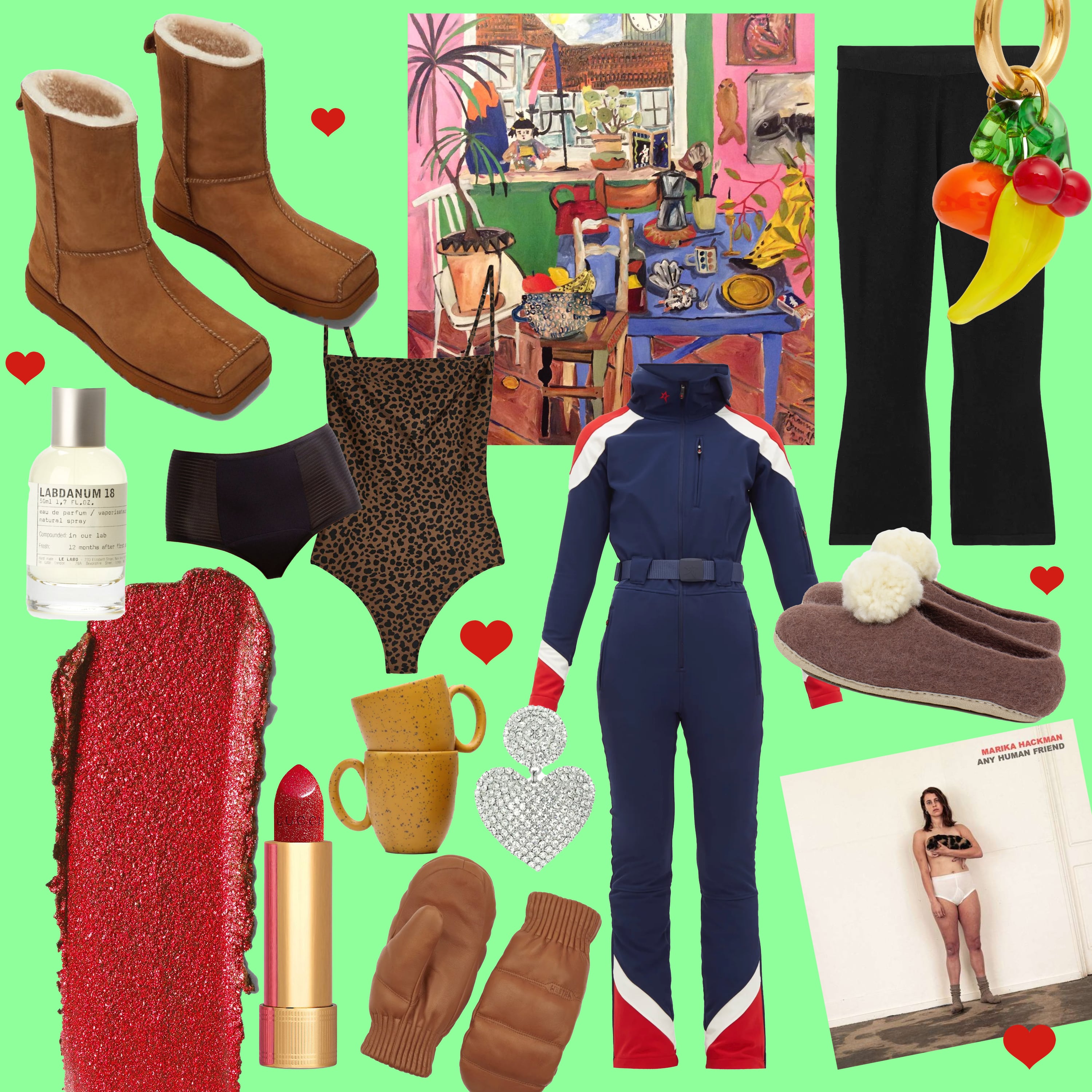 Vergangene Woche habe ich mich noch in meiner Bescheidenheit gesuhlt, vorgegeben, ich würde mir wirklich nichts wünschen, sogar selbst geglaubt habe ich mir, aber dann wurde es kalt, am Wochenende, an den Füßen zum Beispiel. Seither denke ich wieder wie der Teufel an diese Ugg Boots, die Eckhaus Latta ein bisschen schöner gemacht hat, die gerade im Sale gelandet sind und außerdem sehr warm aussehen. Soll ich oder soll ich nicht? Einmal angefangen ging es natürlich weiter mit den „Doch, das könnte ich sehr wohl gebrauchen“-Gedanken, auch, weil ja der Skiurlaub naht: Die Nase voll von viel Ballast und dicken Jacken habe ich auf der Piste, weshalb ich nun liebäugle mit einem relativ dünnen Modell von Perfect Moment, das mich persönlich in den 70er Jahren versinken lässt. Nun finde ich aber, dass Stil auf der Piste so unwichtig ist wie sonstwas, ehrlich, aber gut, sowas trägt man im besten Fall ja ein Leben lang. Weiter ging oder geht es schließlich mit Handschuhen von Hestra, die ich jetzt wirklich schon seit Jahren anstarre und die mir vorkommen, als seien sie super Schlitten-tauglich. Und Beautymaus wie ich entgegen all meiner Überzeugungen nunmal in der Tiefe meines Herzens bin, komme ich auch nicht umher, permanent auf diesen „Lunaison“ Glitzer-Lippenstift von Gucci zu starren, den ich womöglich zur schwarzen Kaschmirhose von Arket und über die Maße dramatischen Herz-Ohrringen tragen würde, immer dann, wenn meine Periode anrollt. Ein Leoparden-Badeanzug, nur für den Fall, dass ich mal wieder eine Auszeit brauche und fertig ist sie wohl, die gar nicht mal so zurückhaltende Wunschliste meiner kühnsten Christkind-Träume. Einen Wunsch werde ich mir erfüllen, oder vielleicht auch zwei. Welche es allerdings werden, darüber muss ich nochmal schlafen.