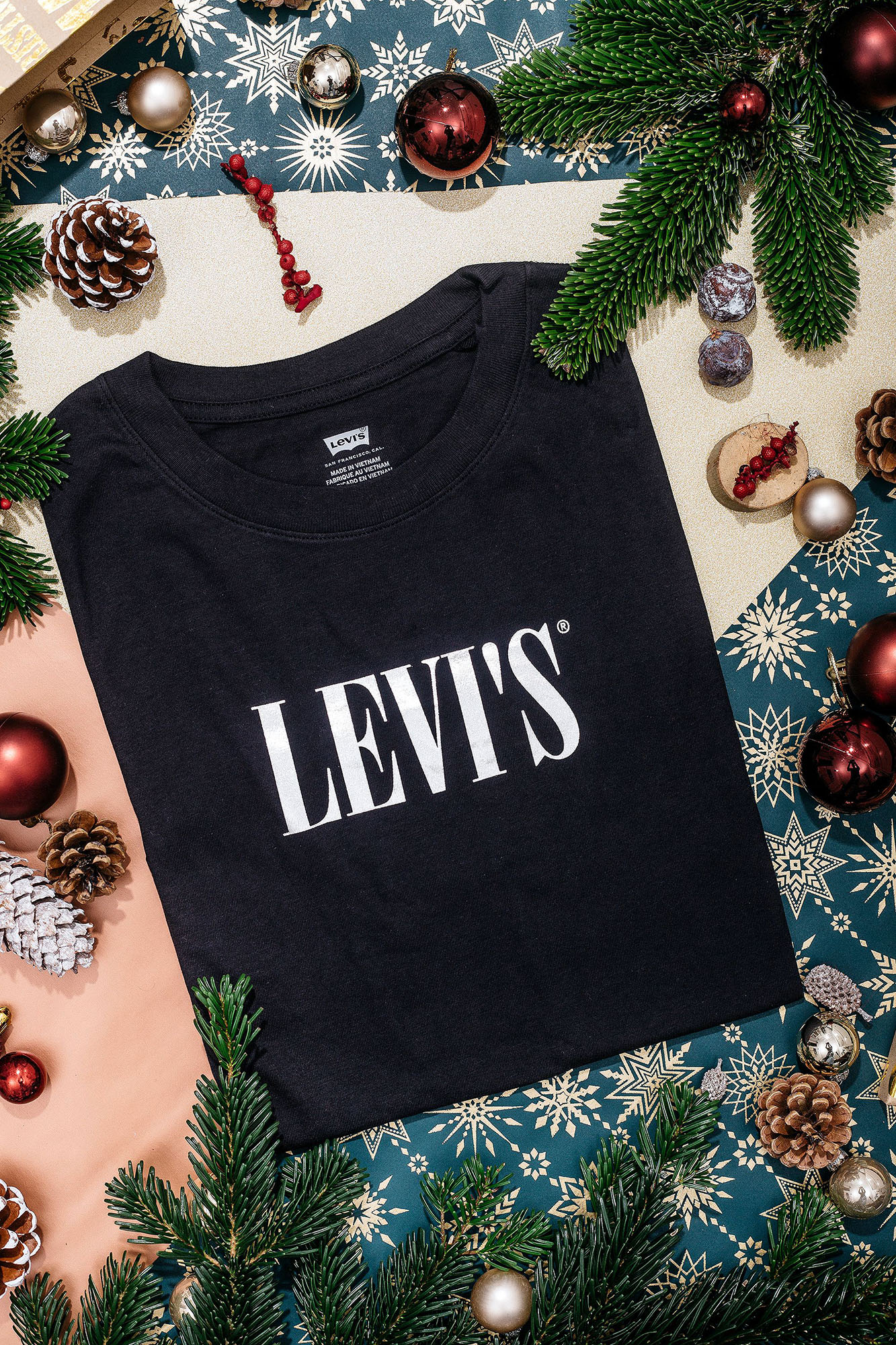 Eigentlich kennen wir Levi’s vor allem mit dem puristischen Logo, das gänzlich auf Serifen verzichtet. Pünktlich zur Weihnachtszeit lancierte das Label jetzt jedoch eine Neuinterpretation des bekannten Logos: Inspirieren ließ sich die Marke dabei vor allem von den großen, charakteristischen Logos der Neunzigerjahre. So wird die neue Variante durch ausgeprägte Serifen hervorgehoben und erhält somit einen ausdrucksstarken und dennoch cleanen Charakter. Für die festliche Zeit präsentiert Levi’s eine Christmas Kollektion und verleiht dem Serif Logo mit schimmernden Silber- und Bronzetönen einen feierlichen Touch.
