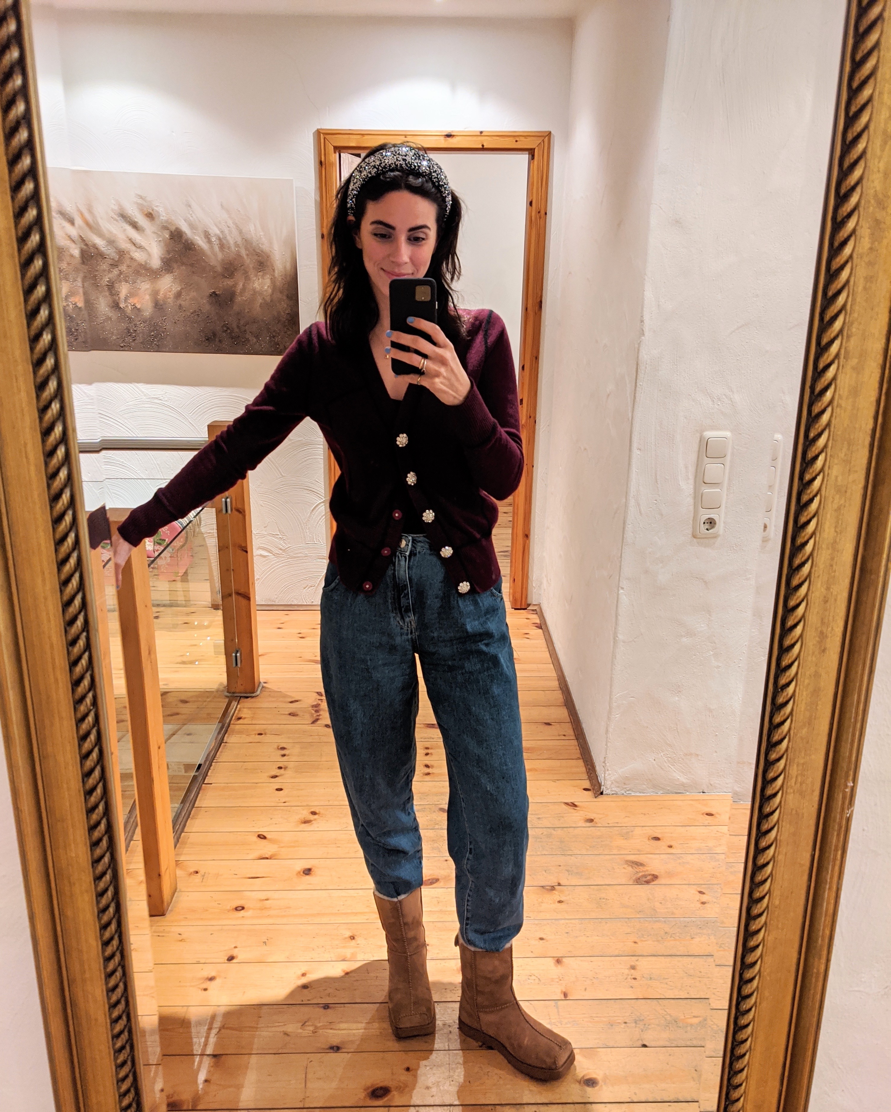 Cardigan: Ganni, Jeans: Mango, Haarreif: Beck Sondergaard,