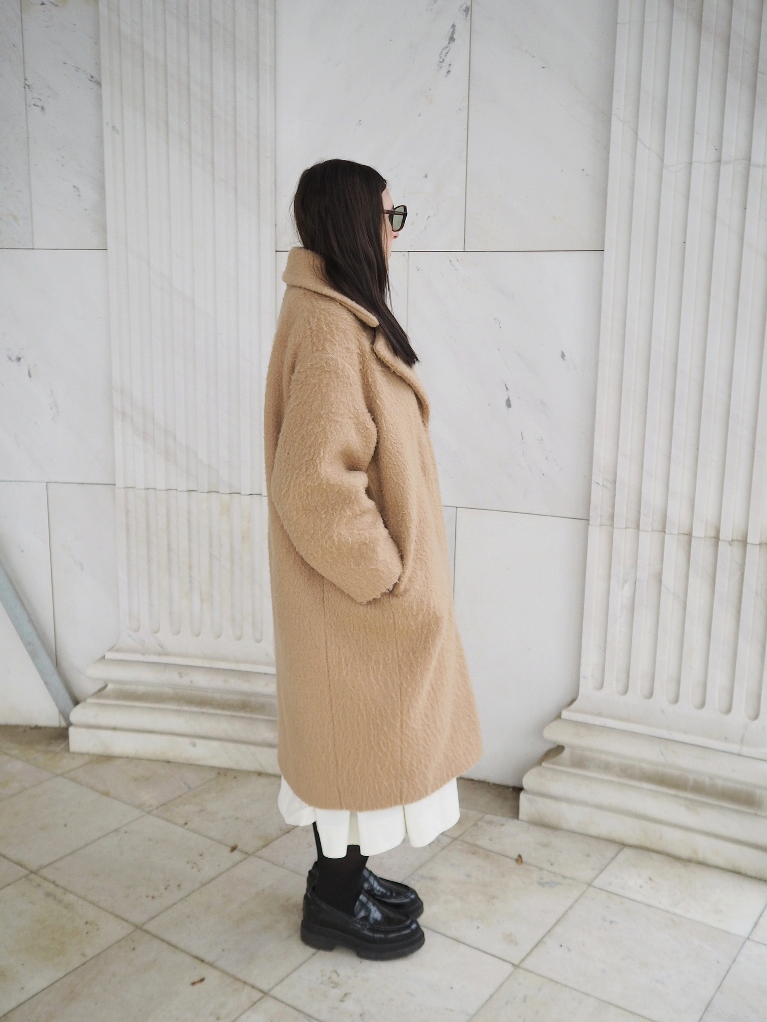 Mantel von Weekday (alt), Schuhe von MM6 Maison Margiela, Sonnenbrille von AlexaChung (alt, ähnlich hier)