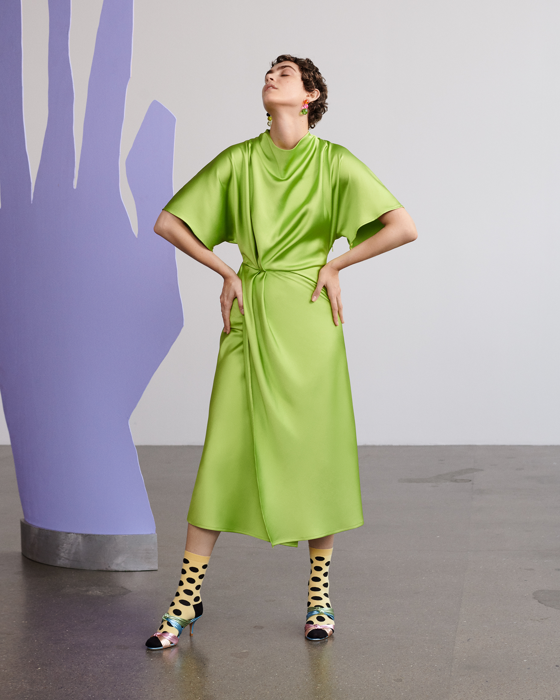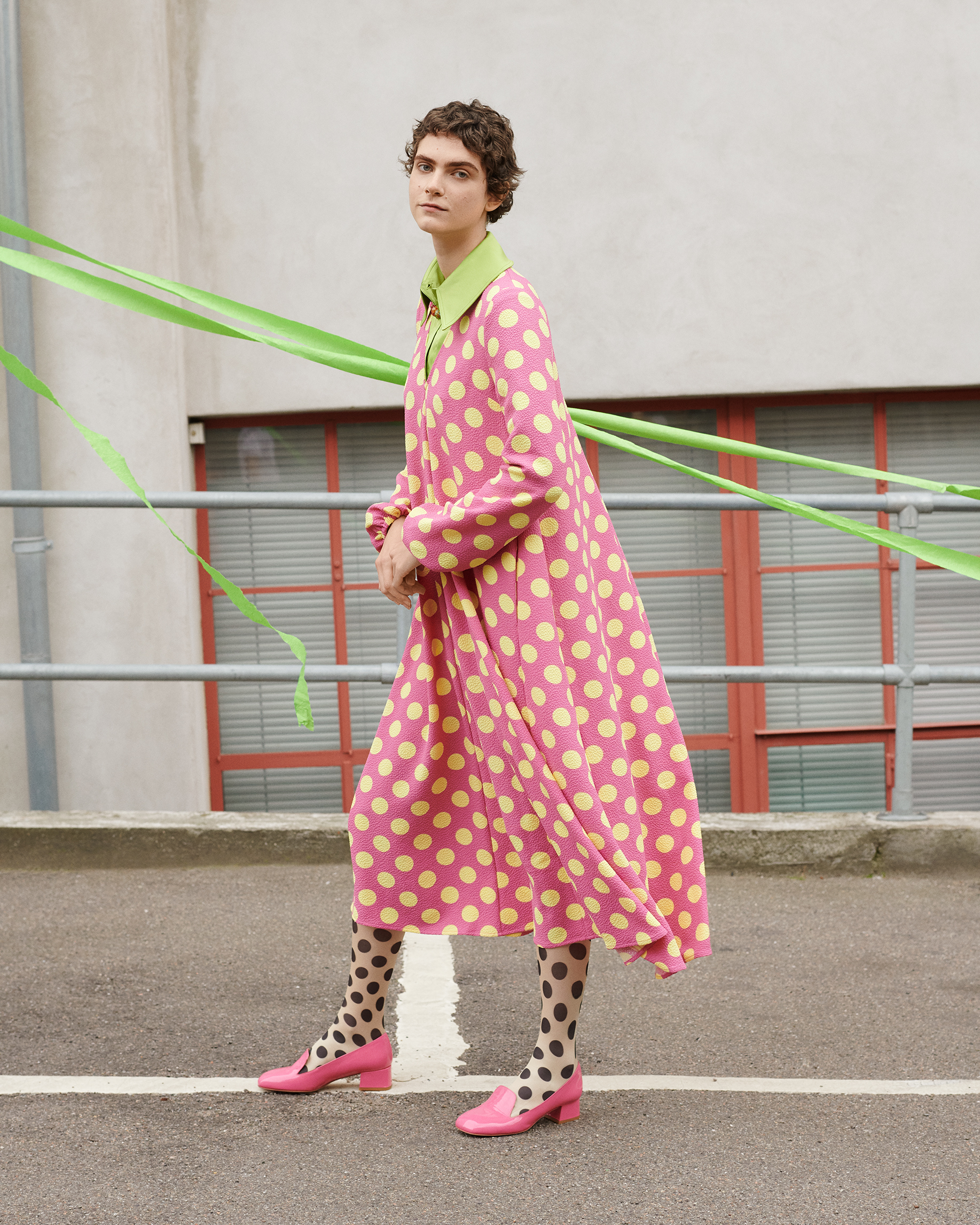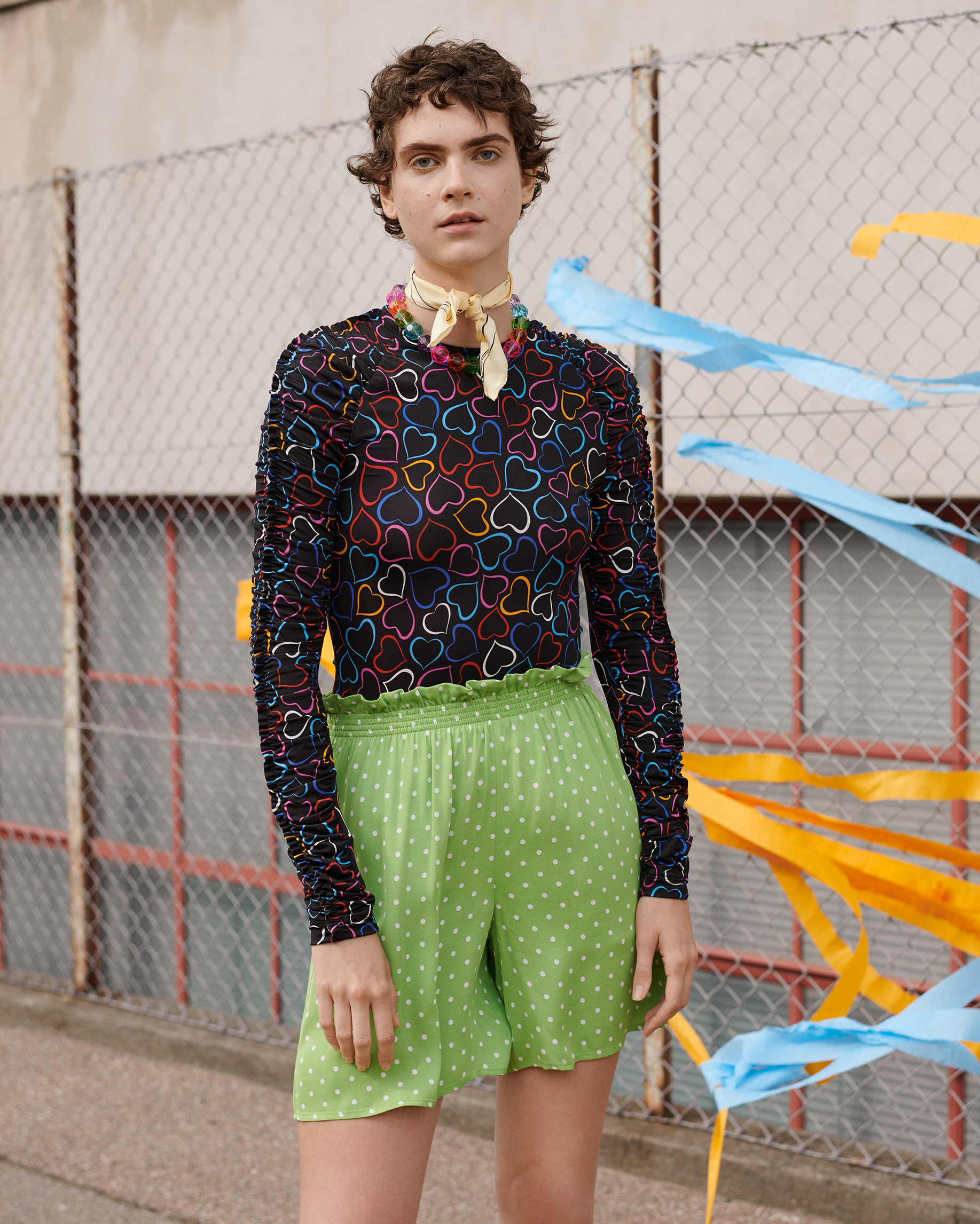 Leuchtende Bonbonfarben, verspielte Prints und eine ordentliche Portion Extravaganz: Stine Goyas Spring Summer 2020 Kollektion zeigt sich gewohnt farbenfroh und spielerisch. Inspiriert wurden die Stücke von der flamboyanten Ballroom Kultur, die stets einen ganz eigenen Stil feiert und nicht nur hervorstechende Individuen, sondern auch alternative Familienmodelle zelebriert. Zwischen karierten Styles zeigt die Kollektion neu interpretierte Muster, große Polka Dots und Herzen-Prints aus recyceltem Polyester und handgenähte Stoffblüten aus GOTS-zertifiziertem Seidenchiffon, Tencel Lycocell sowie Lenzing Ecovero Viskose. Die Spring Summer 2020 von Stine Goya ist ab sofort hier erhältlich.