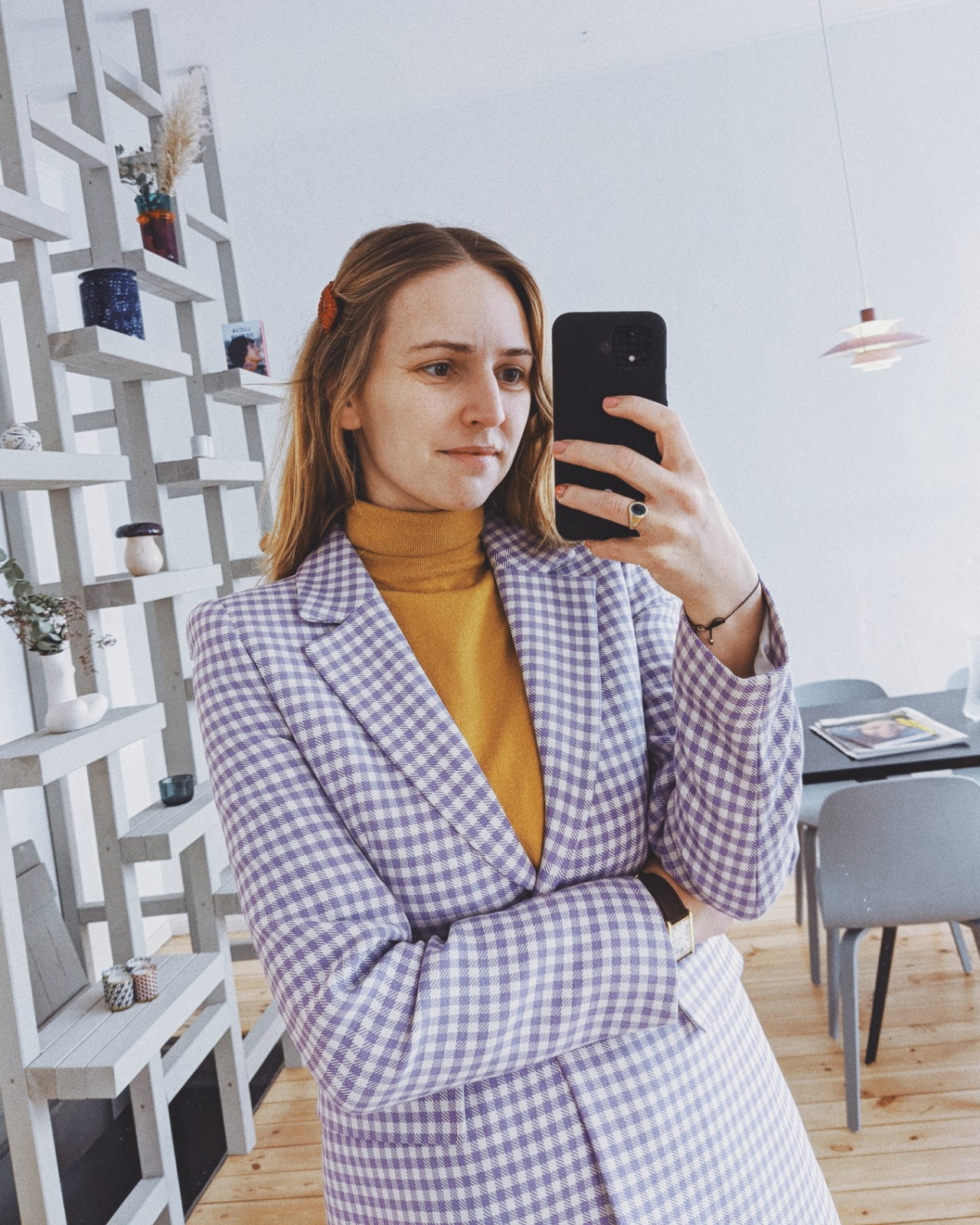 Blazer: Second Hand via Ebay, Mock Neck Shirt: Kauf dich Glücklich (alt, ähnlich hier), Hose: Closed, Gürtel: & Other Stories