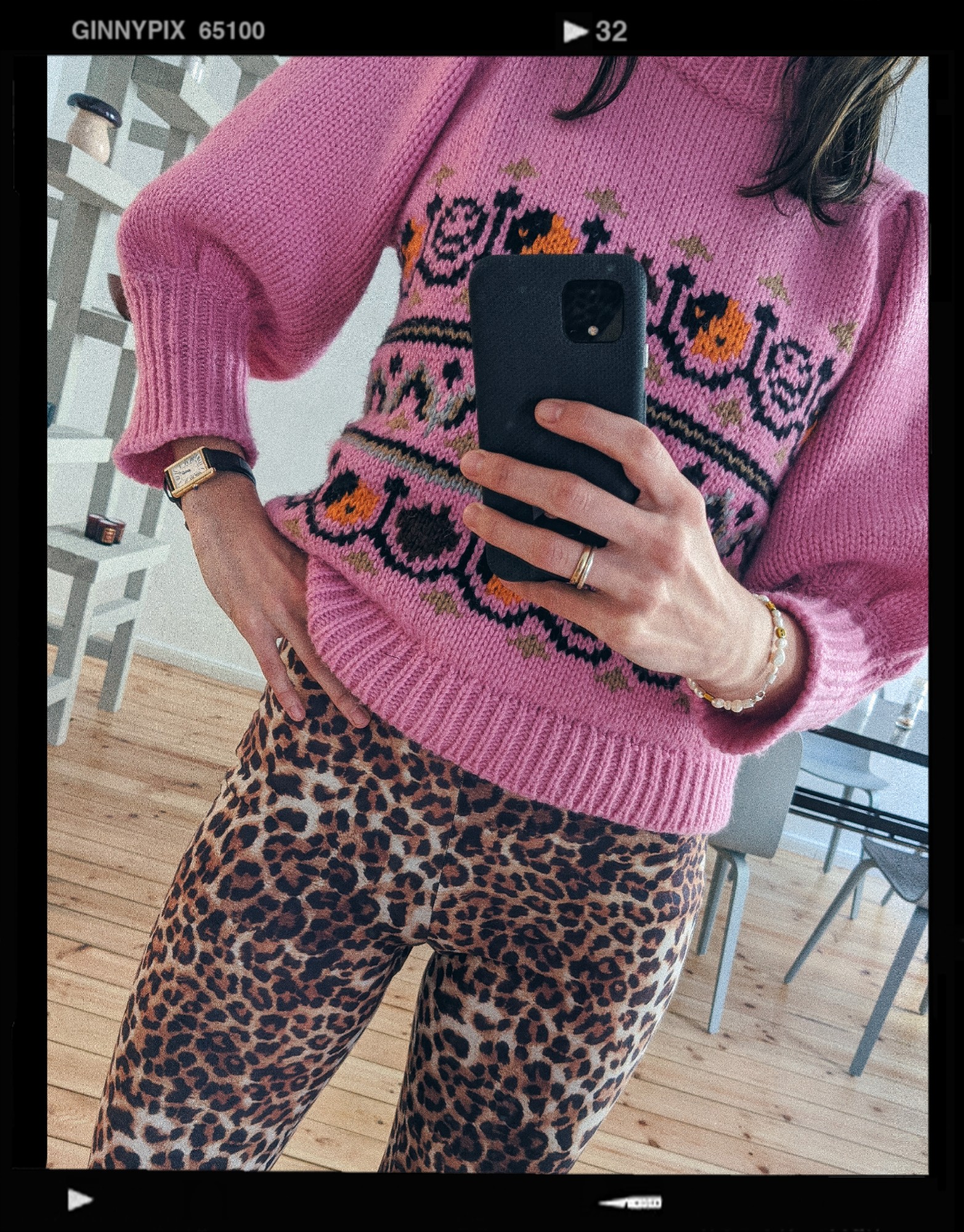 Mein gesamtes Leben besteht aus Phasen, oder besser: Es setzt sich aus ihnen zusammen, reiht eine Ära an die nächste, ohne jemals stillzustehen. Diese Sprunghaftigkeit betrifft nicht nur hin und wieder die großen Bereiche des Seins, sondern auch die kleinen – meinen Kleiderschrank zum Beispiel. Was mich diese Woche geschmackstechnisch geritten hat, weiß ich beim Betrachten der Schnappschüsse ehrlich gesagt auch nicht mehr. War ich beeinflusst vom Ticketkauf für das Berliner Bikini Kill Konzert? Ist es die Vorfreude auf Sleater Kinney im Februar? Möglich. Ich weiß eigentlich nur: Objektiv betrachtet mag ich mit einem rosafarbenen Ying Yang Pullover zur Leoparden-Leggins reichlich daneben liegen, aber mir selbst, mir macht diese Kombination so unendlich viel Spaß, dass ich sie fast zu meinen liebsten des Jahres zählen würde. In Paris hingegen war ich in Latzhose unterwegs – sind das vielleicht erste Anzeichen einer Early Crisis, weil ich einfach nicht fassen kann, dass ich demnächst Mutter eines Schulkindes sein werde? Schließlich war ich fest davon überzeugt, wir hätten noch so unendlich viel Zeit, mindestens einen ganzen Sommer und einen Winter lang, aber nein, die Erzieherinnen, auf die ich sehr vertraue, haben mir den Kopf zurecht gerückt und mich Anfang der Woche während eines langen, lieben Gesprächs gefragt: Wenn nicht Lio, wer denn dann? Keine Ahnung, das weiß ich nach dem Durchsehen aller Bilder und Vorschularbeiten nun auch. An der Nase herum geführt hat er mich zuhause wohl, mit seinen ewig gleichen Aalen, Zügen und Strichmännchen. Pah, der malt sogar in 3D, der freche Vogel. Ich werde dann berichten. Hurra.