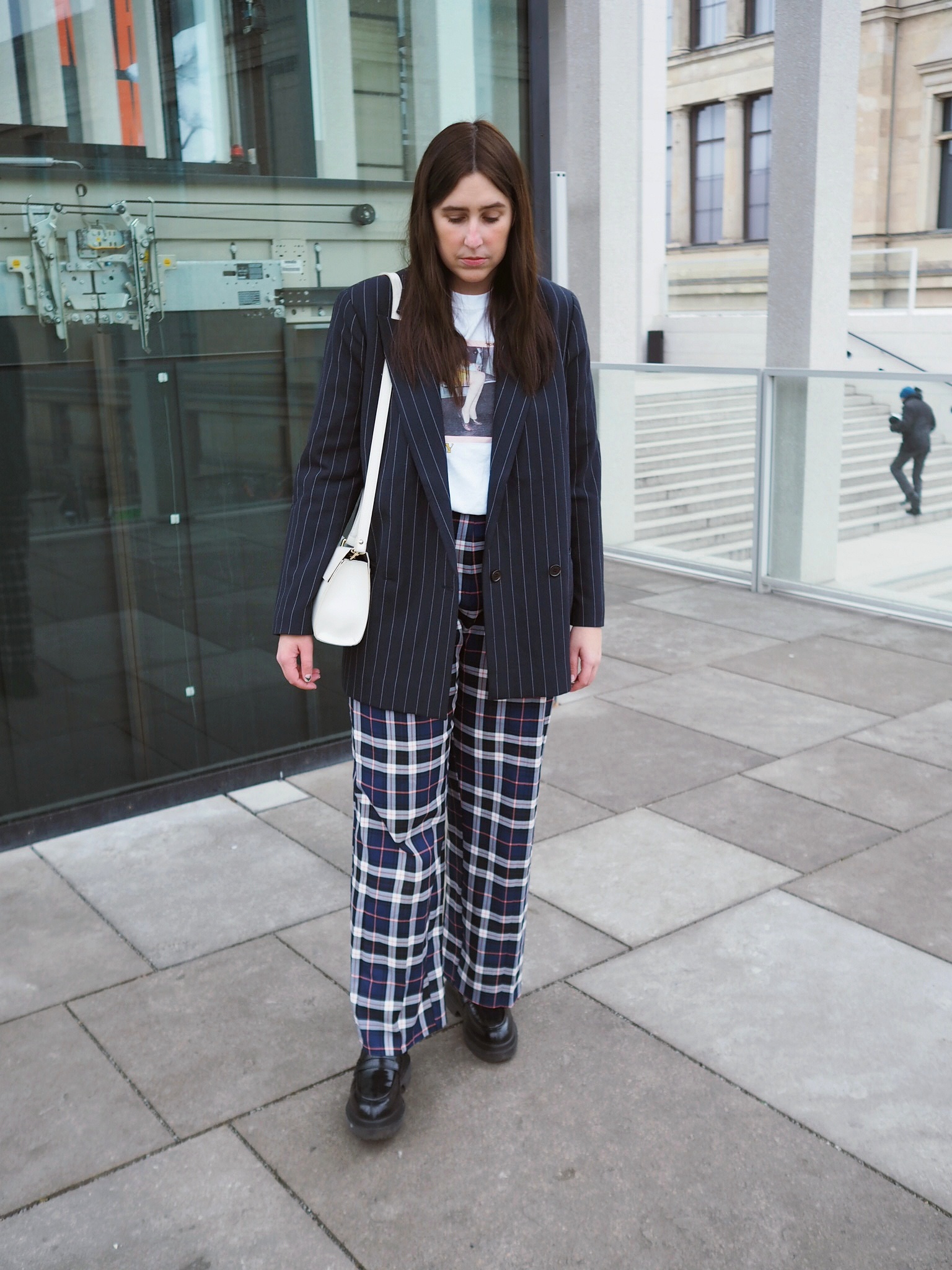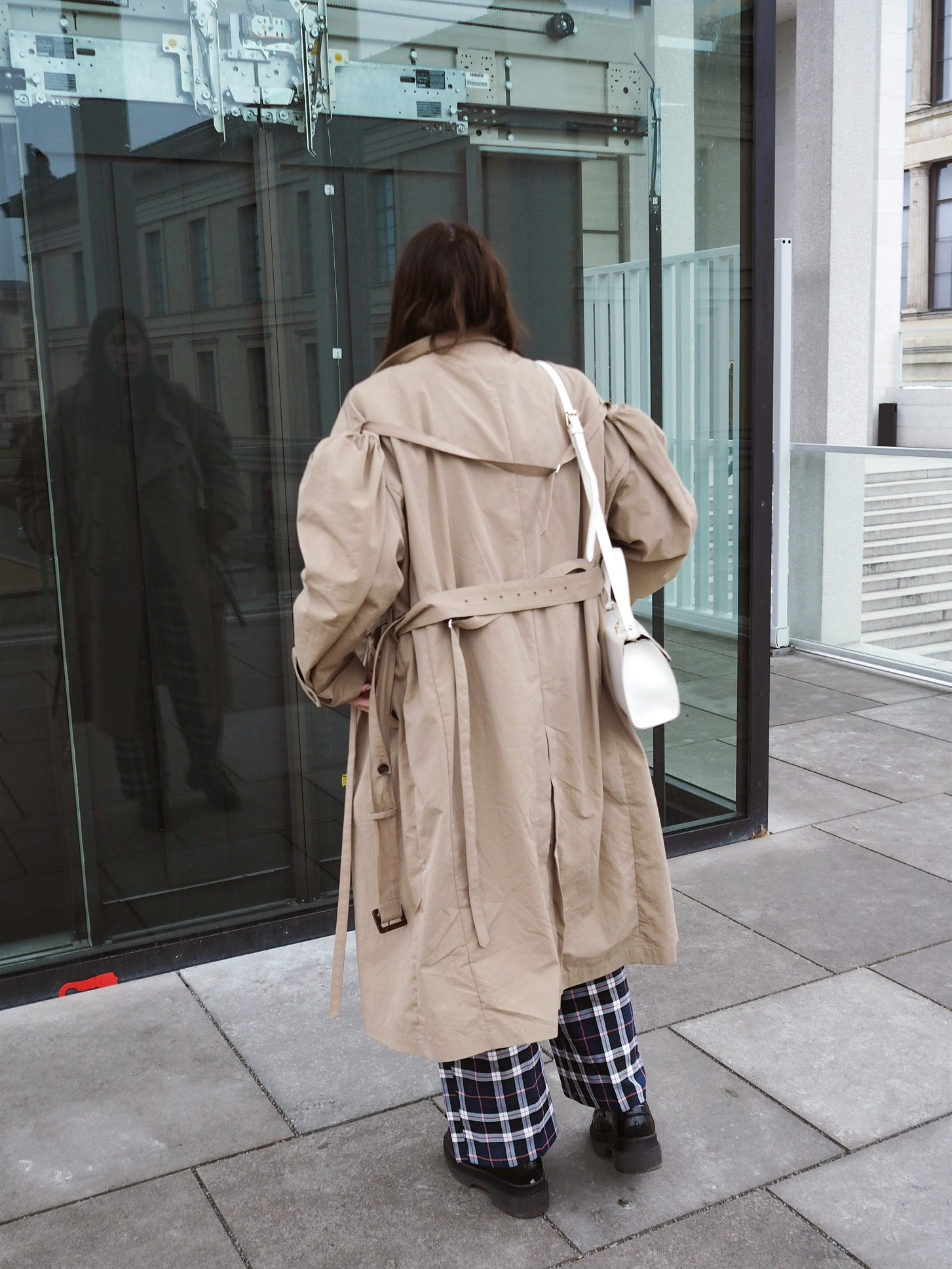 Trenchcoat: Pushbutton (alt), Blazer: Ganni (alte Kollektion, ähnlich hier), T-Shirt: Holiday the Label (alt), Hose: Asos (alt) Tasche: Loeil via Vestiaire Collective, Schuhe: MM6 Maison Margiela