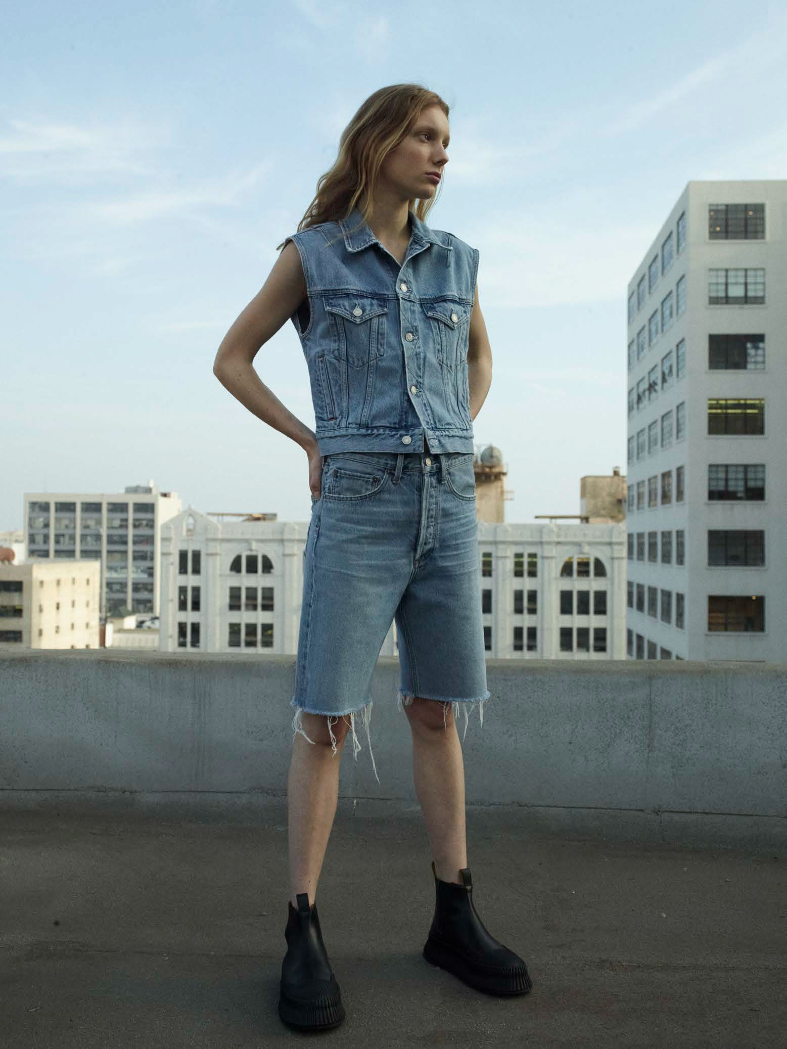 Die neue Agolde Frühjahr/Sommer Kollektion zeugt von Zurückhaltung und Frische. Dabei sind die Silhouetten und Schnitte der Hosen meist gerade und leicht ausgestellt, Shorts werden bis zum Knie getragen und für die Abwechslung aus Denim sorgen Minikleider und Jumpsuits. Die gesamte Kollektion ist bei Agolde erhältlich.