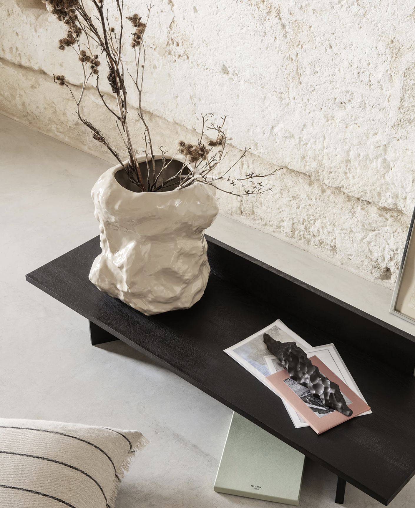 Um diese Kombination aus Tisch und Vase, die ebenso als Kunstwerk durchgehen könnte, schlawenzle ich schon seit Wochen herum – beides stammt von Ferm Living:
