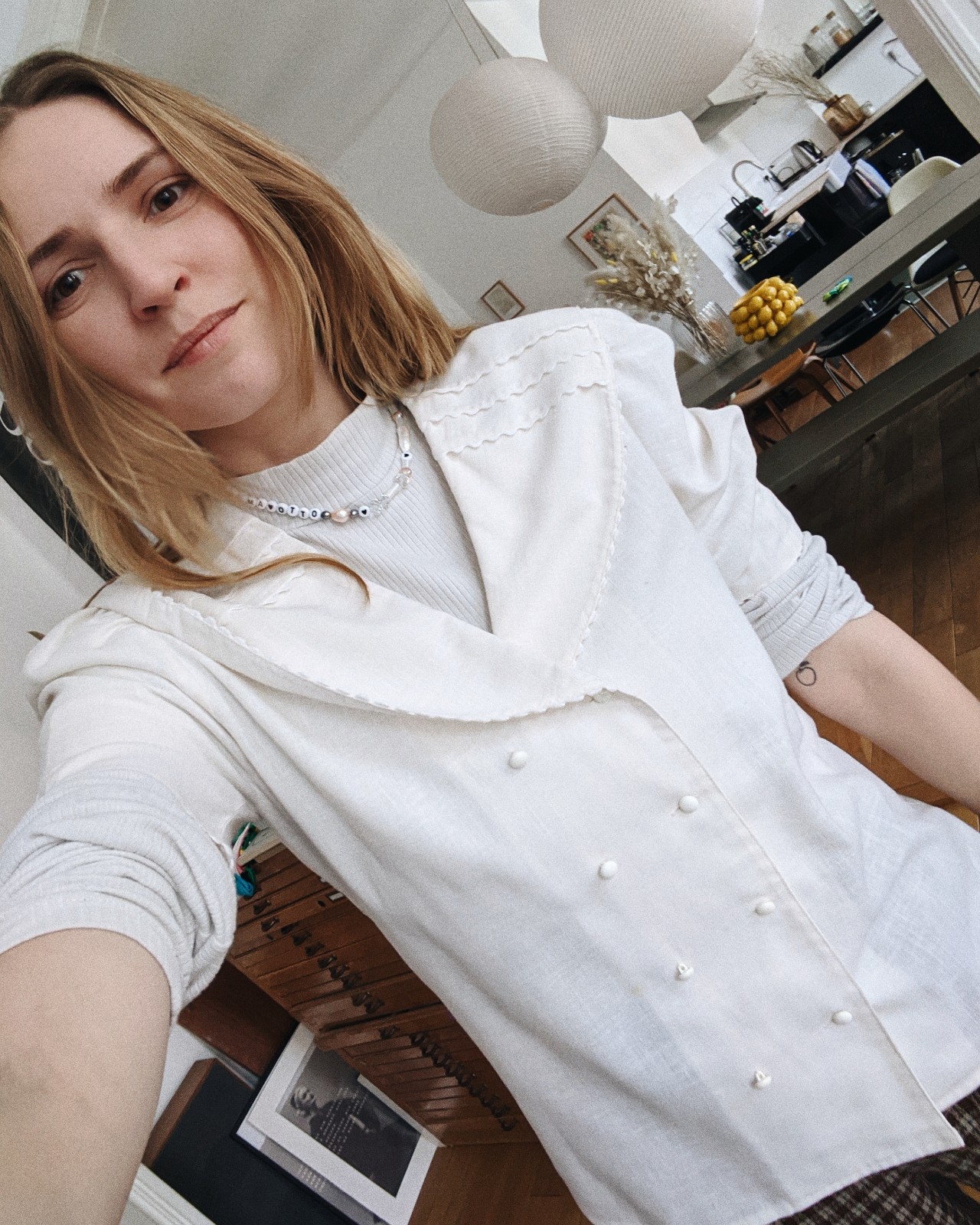 Bluse: Vintage via Grus Grus, Turtle Neck: Kauf dich Glücklich (alt), Kette: Wald Berlin