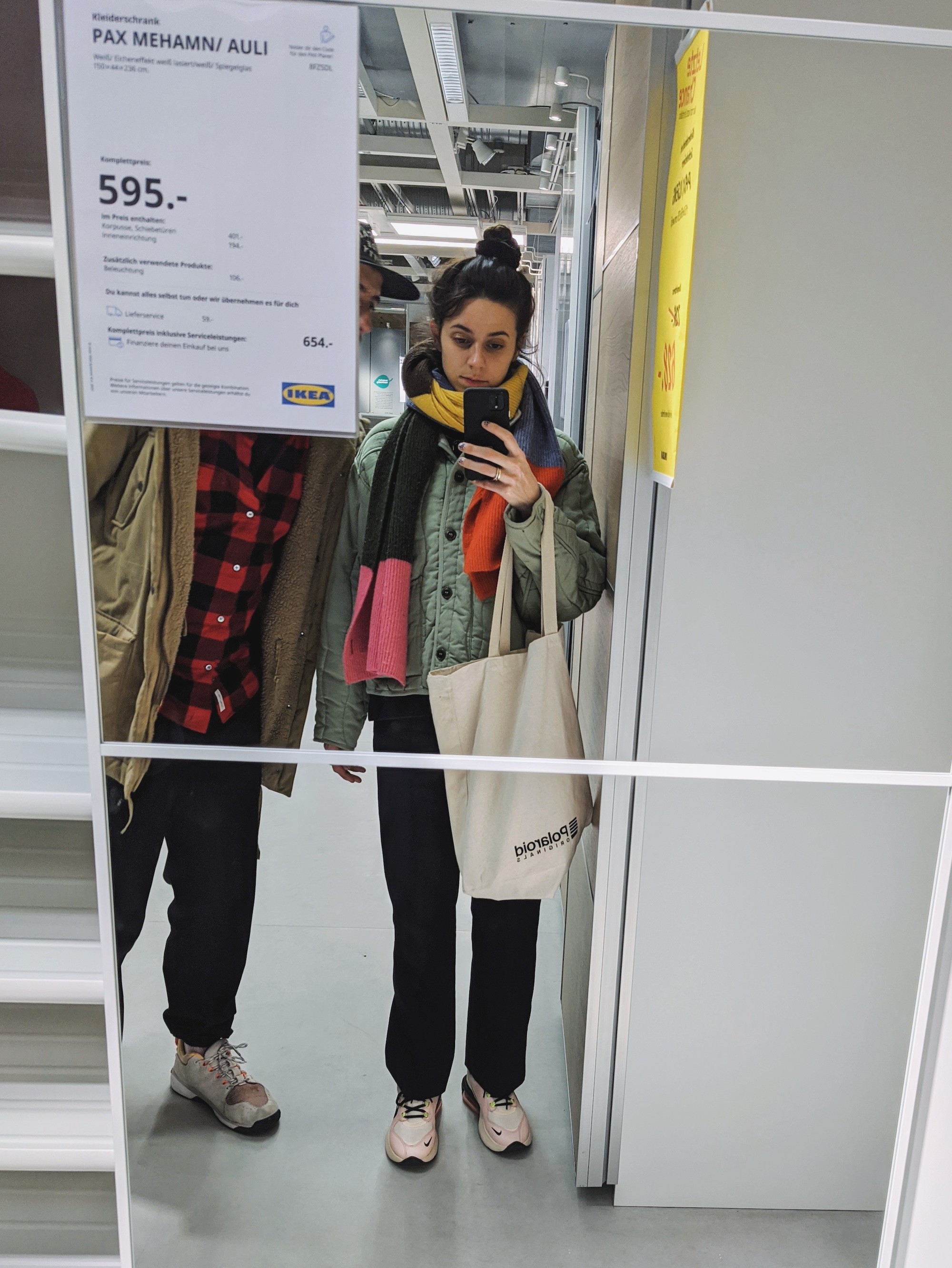 Ich bin fürchterlich selig und richtig gut gelaunt heute, wegen eigentlich allem. Zum Beispiel, weil gestern Sleater Kinney in Berlin spielten (neben Bikini Kill die ultimativen Heldinnen meiner Jugend), weil ich es endlich geschafft habe, die Sache mit dem Umzugsunternehmen dingfest zu machen, weil sich Lio endlich auf seine Einschulung im Sommer freut, weil es meiner Oma gerade so gut geht, dass sie am Wochenende sogar in ein zuckersüßes Karnevalskostüm geschmissen hat, weil mein Papa mich am Wochenende besuchen kommt, weil Sarah jüngst ein neues schneeweißes Haar mitten auf meinem Kopf entdeckte, weil alle Arzttermine der vergangenen Woche besser hätten nicht laufen können, weil wir mit Jane Wayne ein Dinner geschmissen haben und bei der Eröffnungsrede nicht hinten rüber gekippt sind, weil ich bald auf einem Panel von Grünen sitzen werde, um über Frauenbilder im Internet zu sprechen, weil ich fast verrückt werde vor lauter Liebe und außerdem im Urin habe, dass 2020 ein gutes, viel besseres, anständiges Jahr vollgestopft mit ganz viel Neuem wird.  Kleidungstechnisch betrachtet geht es bei mir seit einigen Wochen etwas seltsam zu, weil ich noch immer die meiste Zeit aus dem Halbvollen meiner Übernachtungstasche schöpfe und etliche Lieblingsstücke längst in Kisten stecken.