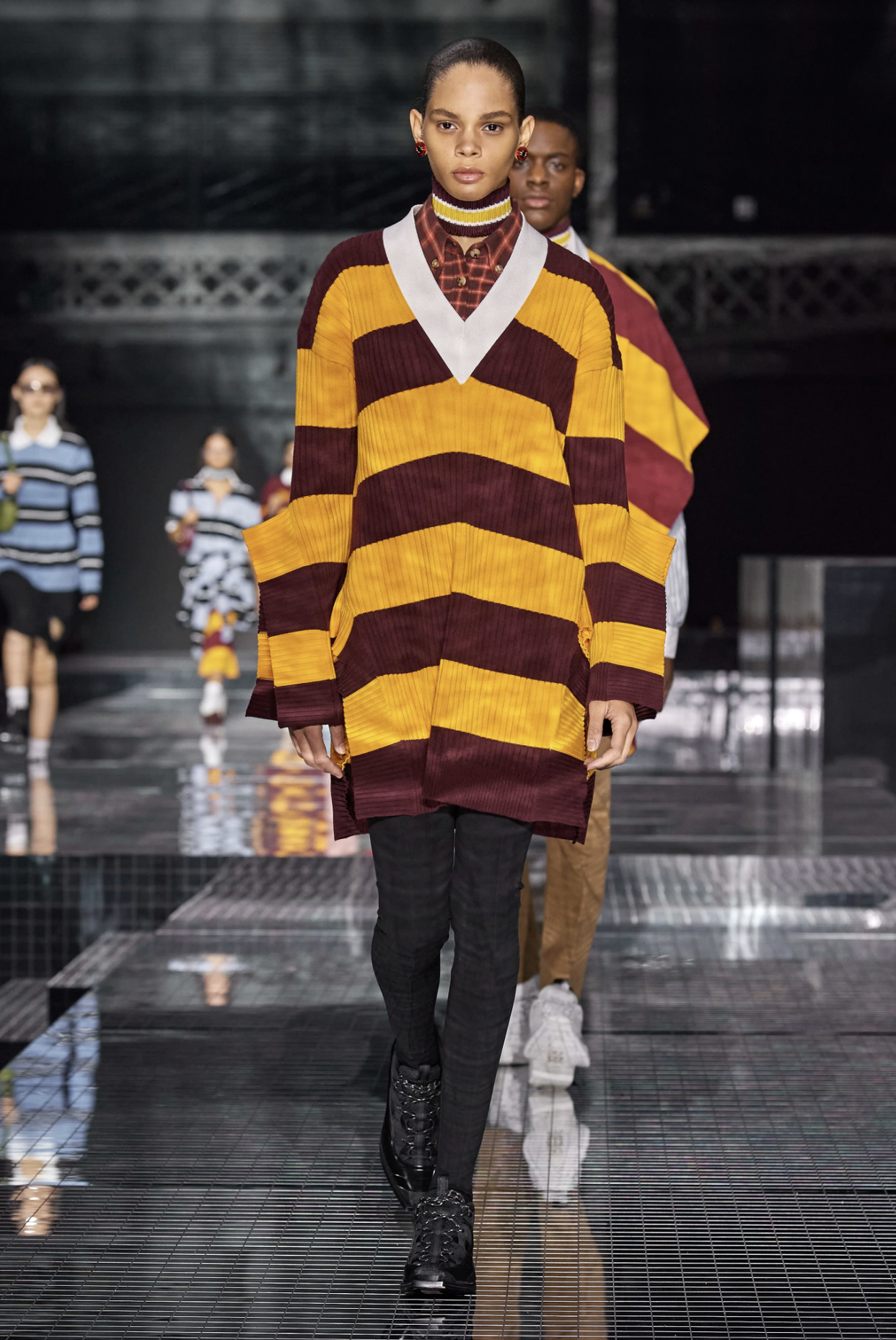 Keine Frage, Burberry hatte für die kommende Herbst Winter Saison jede Menge tolle Trenchcoats und Mäntel auf Lager, meine persönlichen Highlights waren aber die gestreiften Pullover, Capes und Longsleeves (insbesondere in Überlänge), die an klassische Rugby-Shirts erinnerten.
