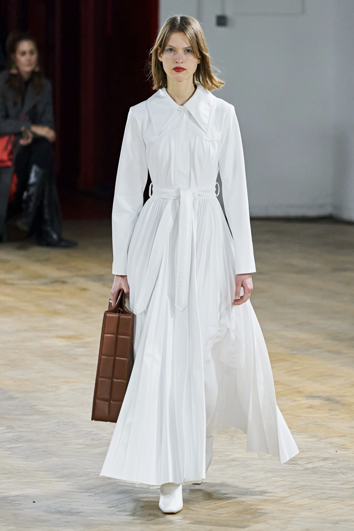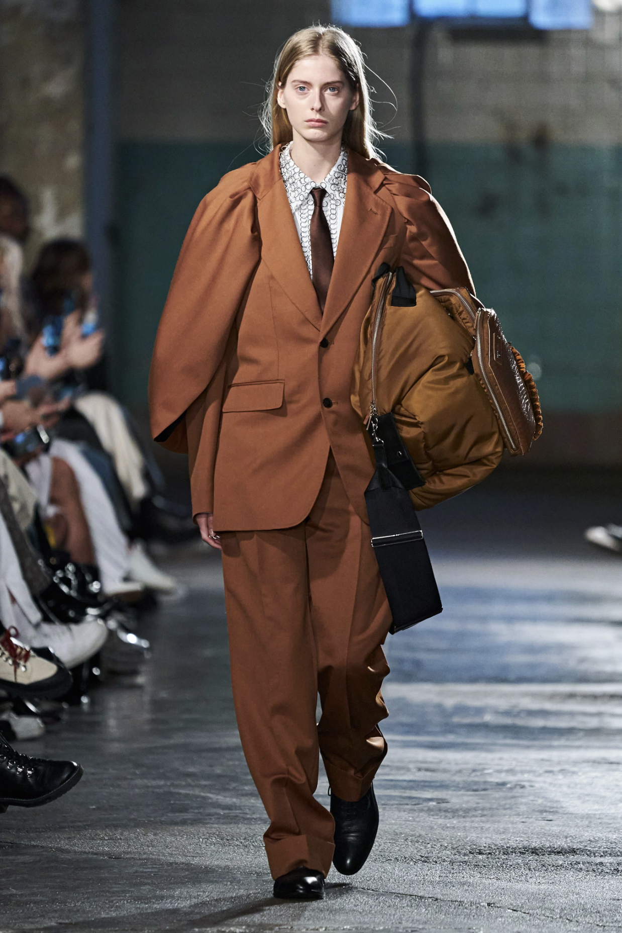 Für seine Herbst Winter 2020 Kollektion dachte Jonathan Anderson darüber nach, was es braucht, um einen Raum zu betreten. Als einen Aspekt nannte er, Platz mit einer starken Silhouette einzunehmen — seine weiten Mäntel, die ein wenig an Origami erinnerten, taten genau das und waren dabei gleichermaßen so schön als auch stark, dass ich mir für den Winter kaum einen anderen Mantel vorstellen mag.
