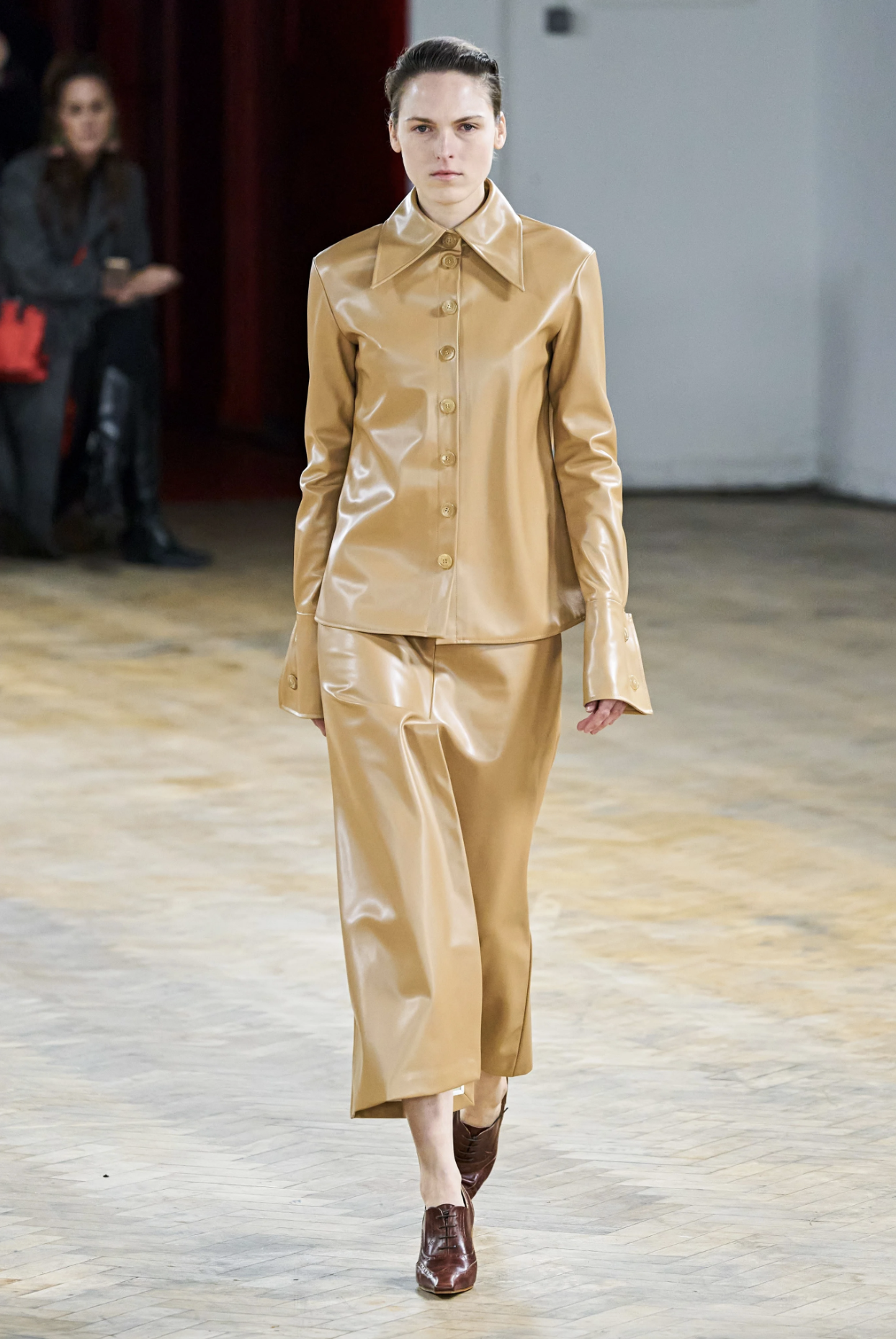 In der Mode fällt der Begriff der modernen Frau ja schrecklich oft, auch wenn ich glaube, dass er häufig mit Stereotypen aufgeblasen wird. Würde es sie aber wirklich geben, die moderne Frau, sie würde ganz sicher die Herbst / Winter 2020 Kollektion von Rejina Pyo tragen. Zwischen Röcken, Shirts und Mänteln aus Leder bestechen vor allem die vielen Brauntöne, die selbst das langweiligste Beige aufregend erscheinen lassen. Außerdem stark: Die weit geschnittenen Anzüge, die ein wenig an 80er Jahre Menswear erinnern.
