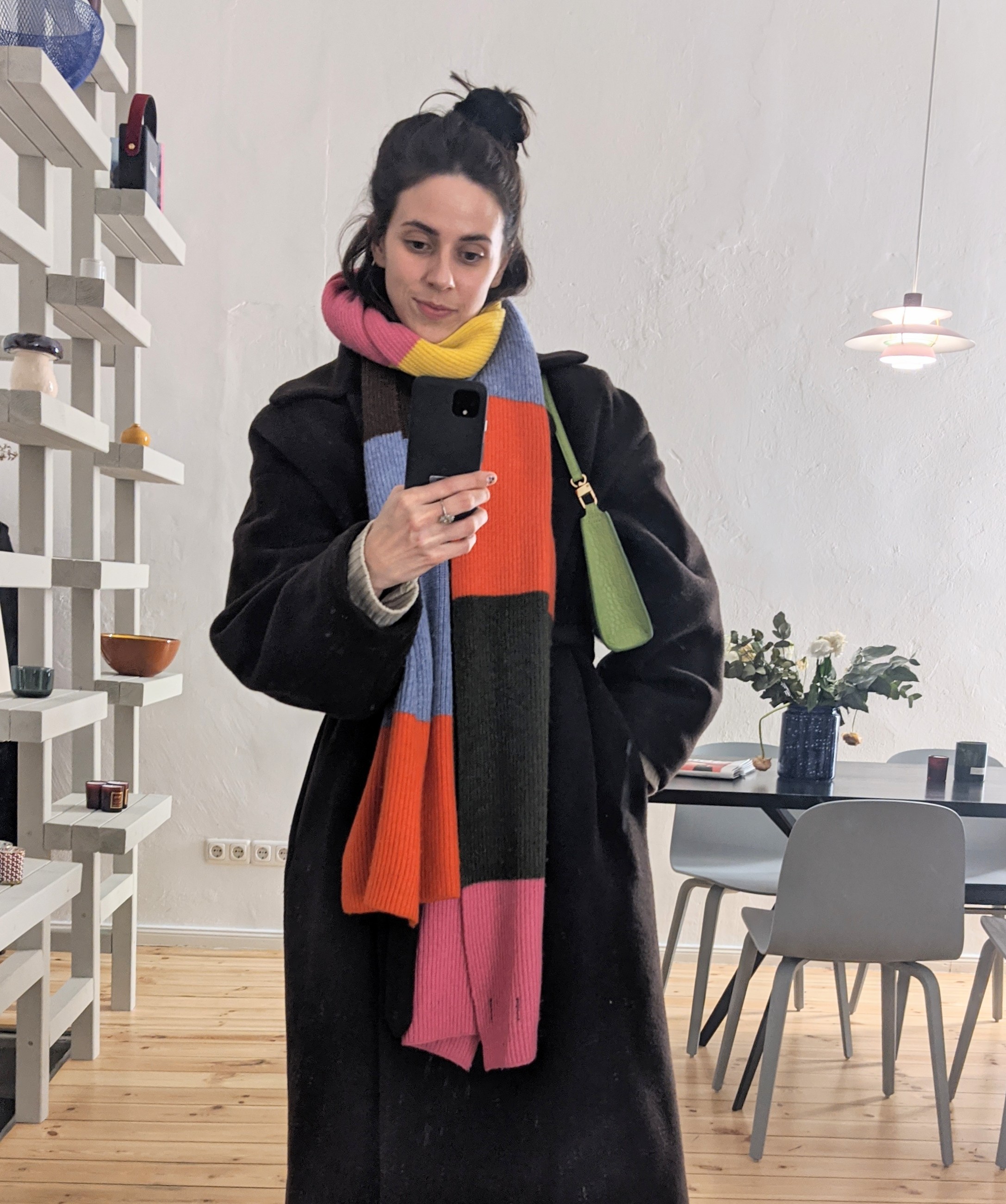 Mantel: & other stories, Schal: Ganni, Tasche: Mango