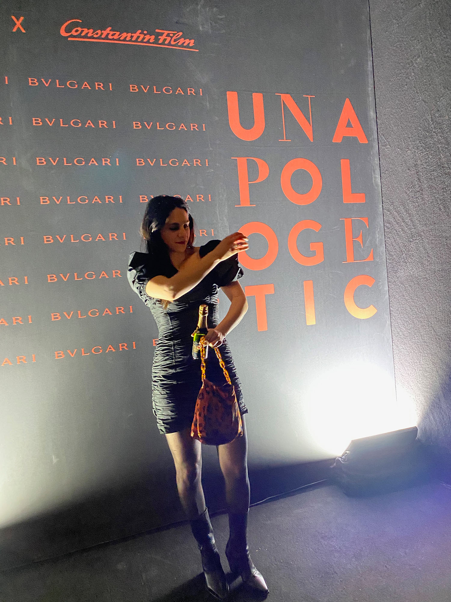 Kleid: H&M ähnliches hier, Stiefel: Aeyde, Tasche: Musier Paris