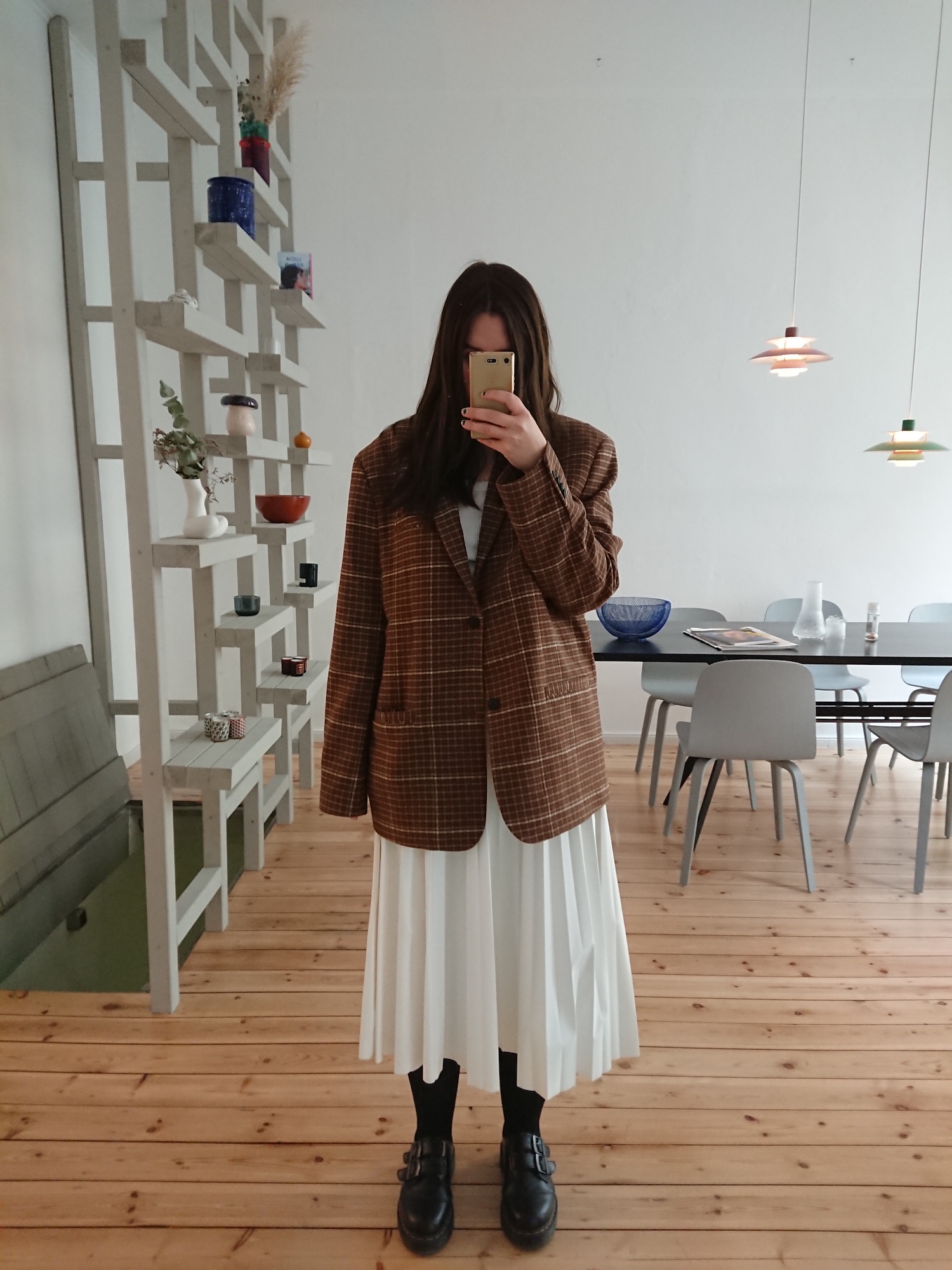 Blazer: Weekday (Menswear), Rock: MM6 Maison Margiela, Schuhe: Dr. Martens (älter)